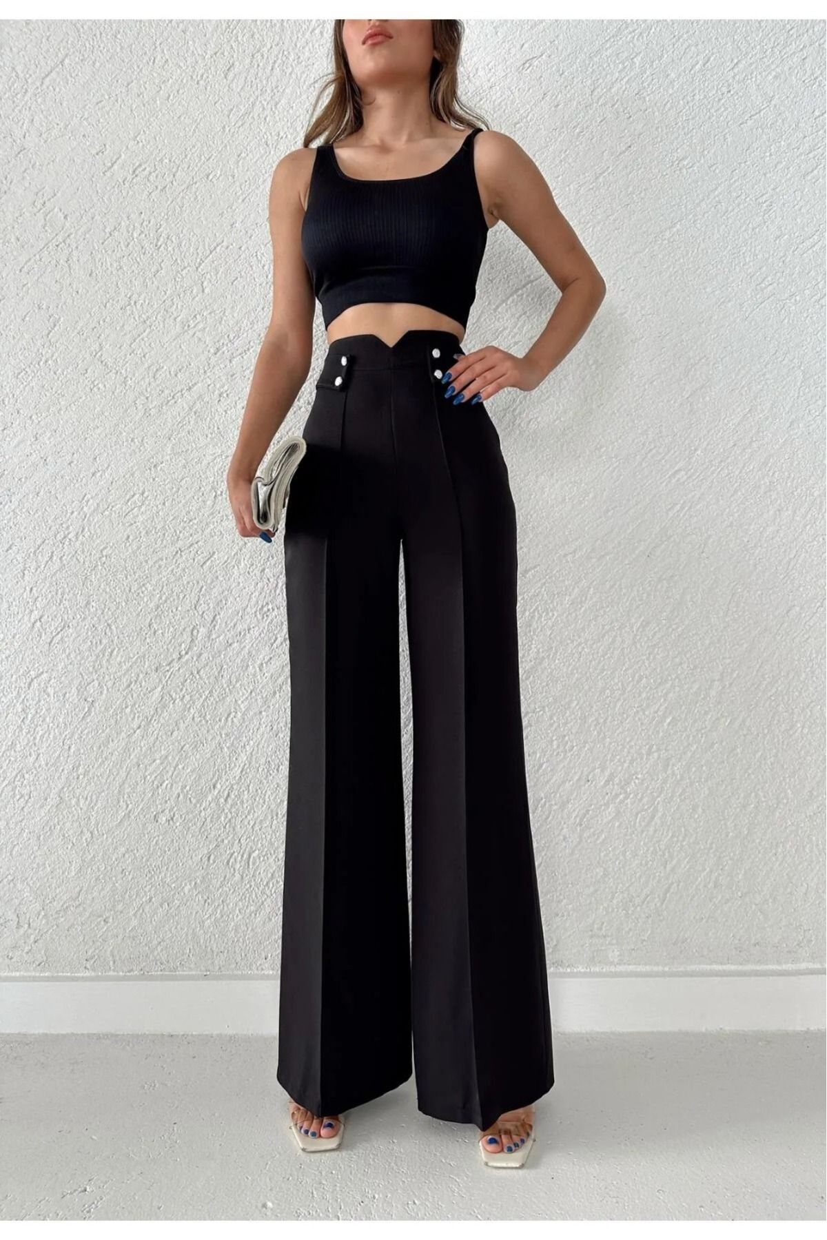 H&A İSTANBUL Kadın Yüksek Bel Palazzo Düğmeli Detay Slim Fit Kalip Pantolon en ucuz fiyata kozmetikara.com sitemizden sipariş verebilirsiniz.
