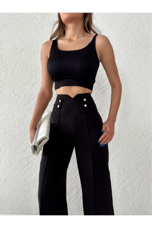 H&A İSTANBUL Kadın Yüksek Bel Palazzo Düğmeli Detay Slim Fit Kalip Pantolon