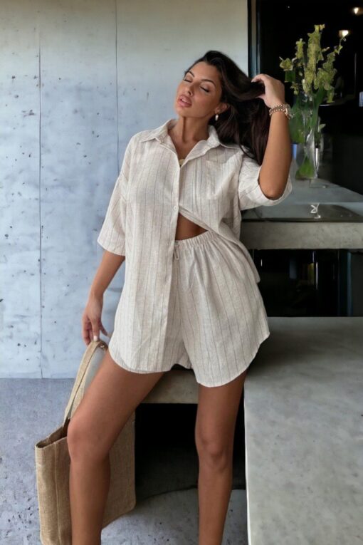 Ana Sayfa » kozmetikara.com » Giyim » Takımlar » Alt - Üst Takım » HAKKE Gömlek Şortlu Keten TAKIM