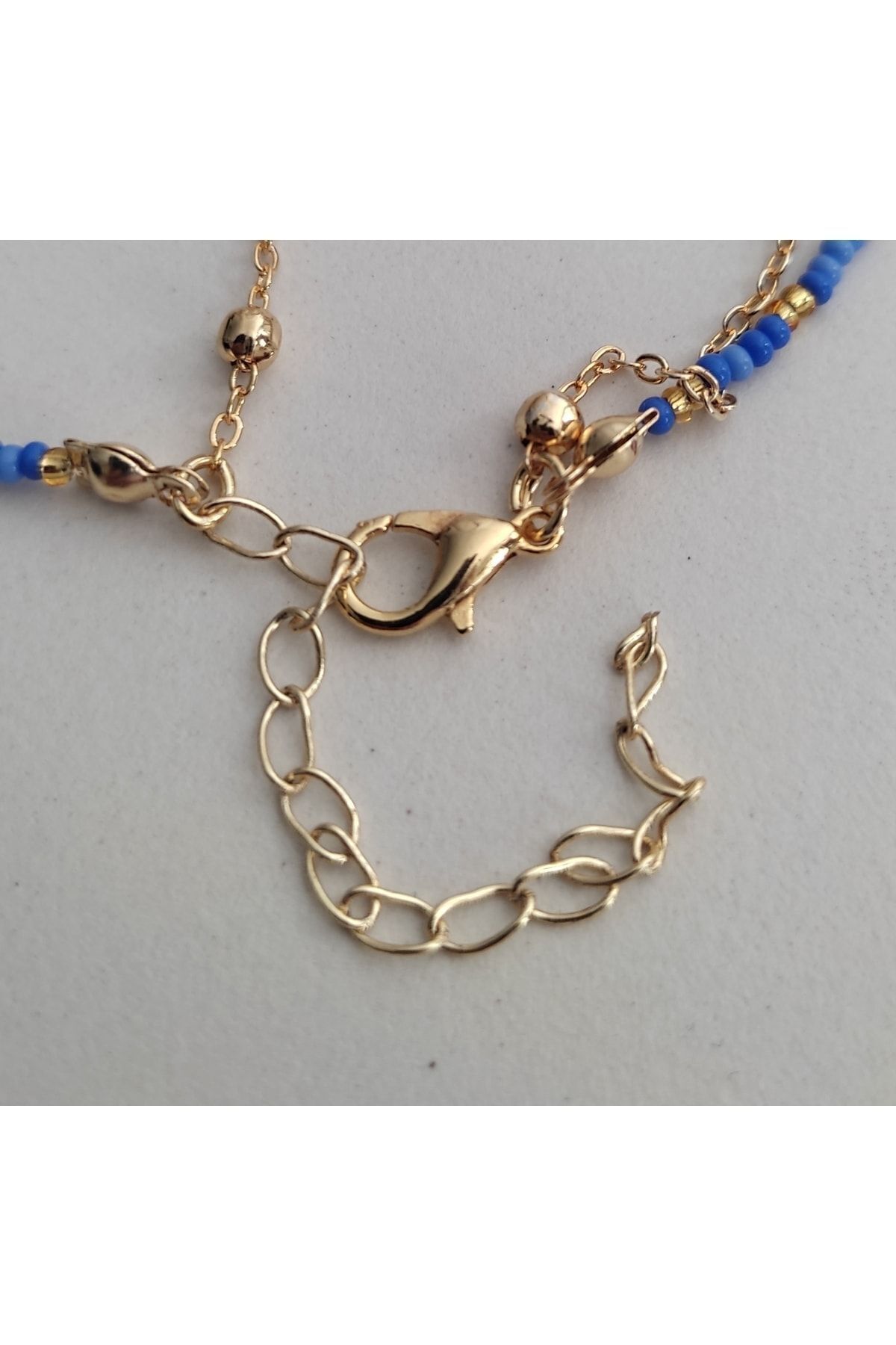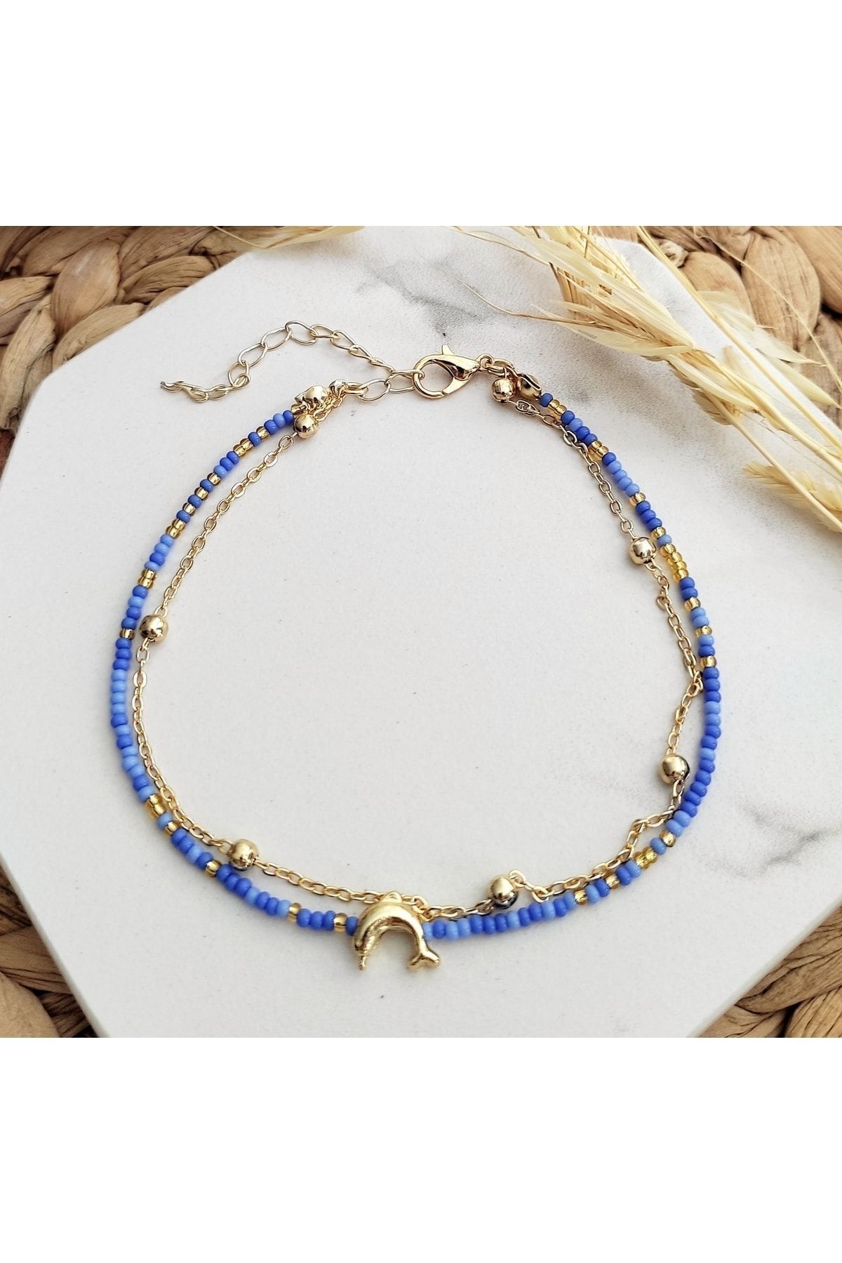 HALHALMILL Mavi Boncuklu Gold Renkli Yunus Sallantılı Halhal