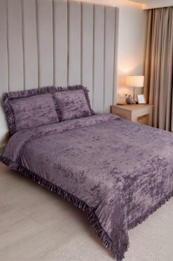 HAMUR Crush Hare Efektli Çift Kişilik Yatak Örtüsü Seti 2 Yastık Kılıfı Fırfırlı Saten Parlaklığı Mürdüm