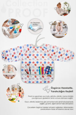 HAMUR Proof Uzun Kollu 4-6 Yaş Sıvı Geçirmez Etkinlik Mama Aktivite Anaokul Kreş Bebek Çocuk Önlüğü Planet