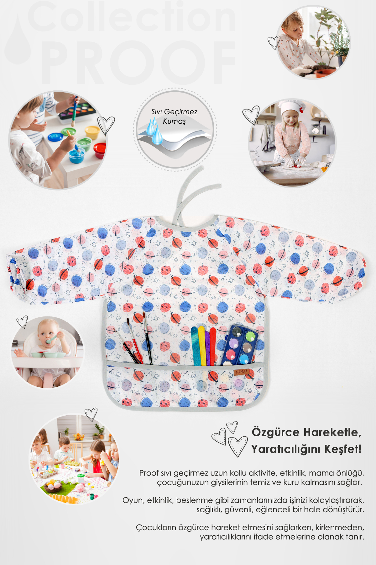 HAMUR Proof Uzun Kollu 4-6 Yaş Sıvı Geçirmez Etkinlik Mama Aktivite Anaokul Kreş Bebek Çocuk Önlüğü Planet ürününü en uygun fiyata kozmetikara.com sitemizden sipariş verebilirsiniz.