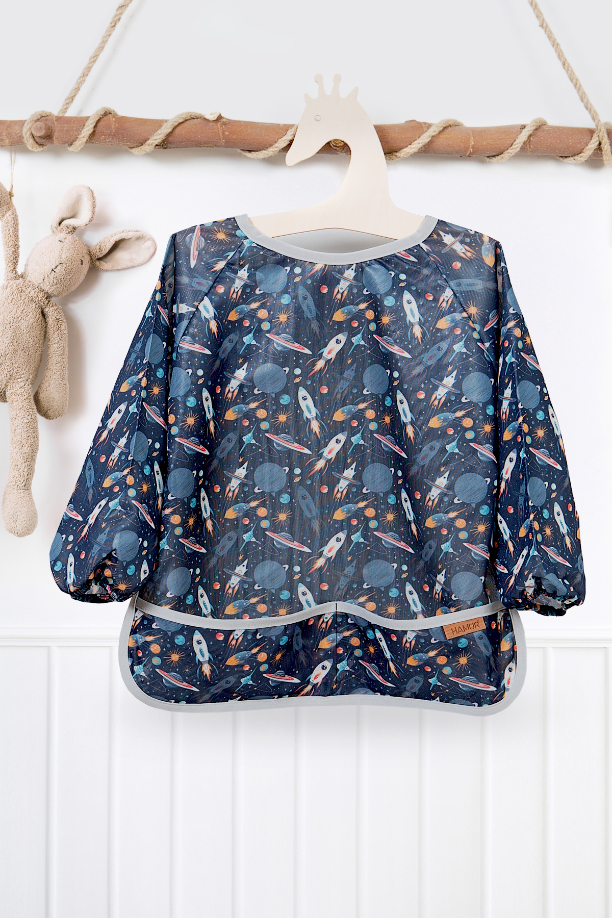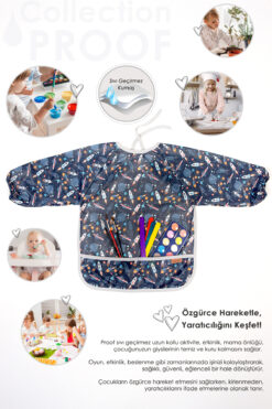HAMUR Proof Uzun Kollu 6-24 Ay Sıvı Geçirmez Etkinlik Mama Aktivite Anaokul Kreş Bebek Çocuk Önlüğü Galaxy