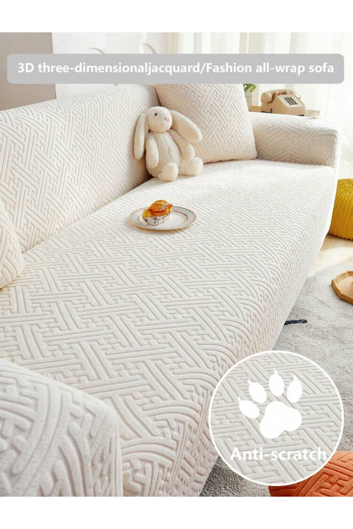 Senpai Pamuklu Koltuk Örtüsü 170×210 cm Tekli&Üçlü Koltuk,Çekyat ve Berjer İçin | Krem