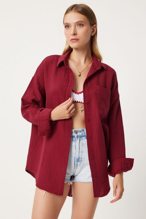 Happiness İstanbul Kadın Bordo Oversize Basic Müslin Gömlek MX00150 en ucuz fiyata kozmetikara.com sitemizden sipariş verebilirsiniz.