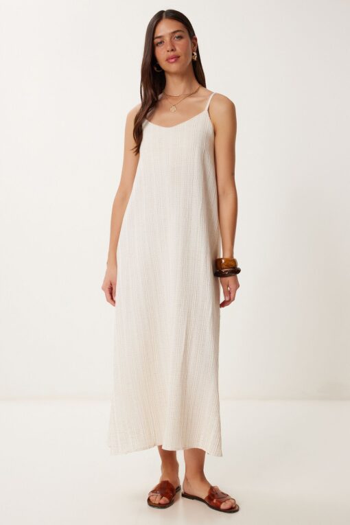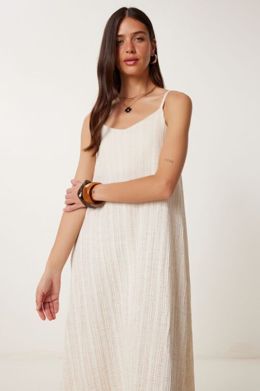 Happiness İstanbul Kadın Krem İnce Askılı Çizgili Dokuma Elbise CR00509 ürünü ucuz fiyat, hızlı kargo ve kredi kartına 12 ay taksit imkanı ile hemen sitemizden sipariş verin.