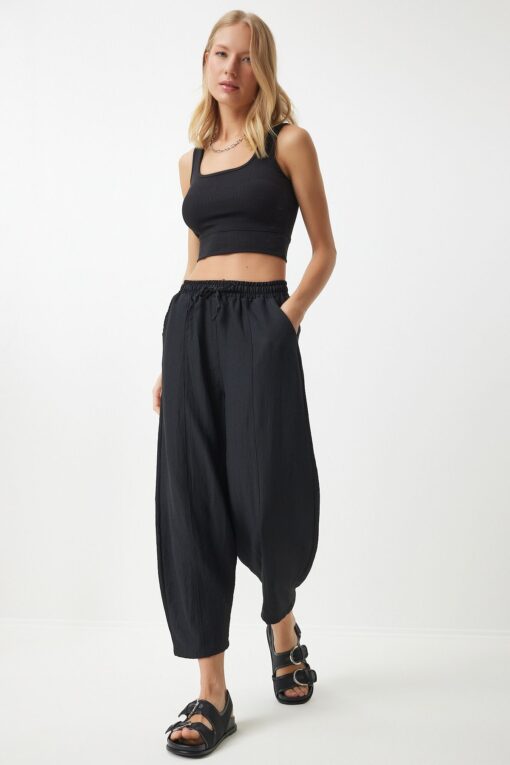 Happiness İstanbul Kadın Siyah Cepli Keten Viskon Şalvar Pantolon CV00001 Fiyatları, Özellikleri ve Yorumları