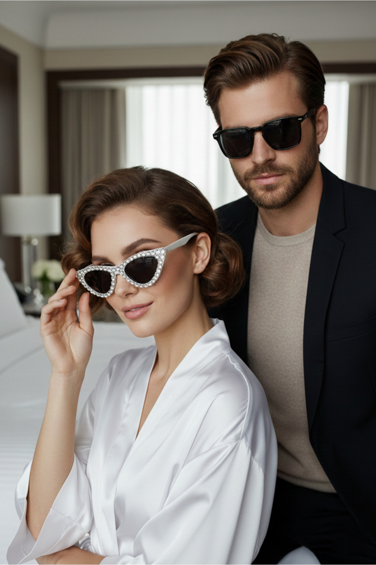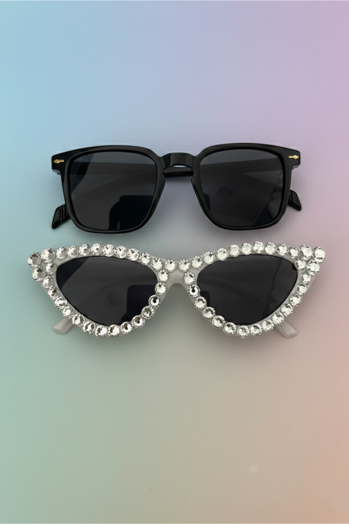 Happyline 2 Adet After Party Gözlük, Cat Eye Parti Gözlük,Taşlı Bride Gözlük, Çift Güneş Gözlüğü, Damat Gözlük