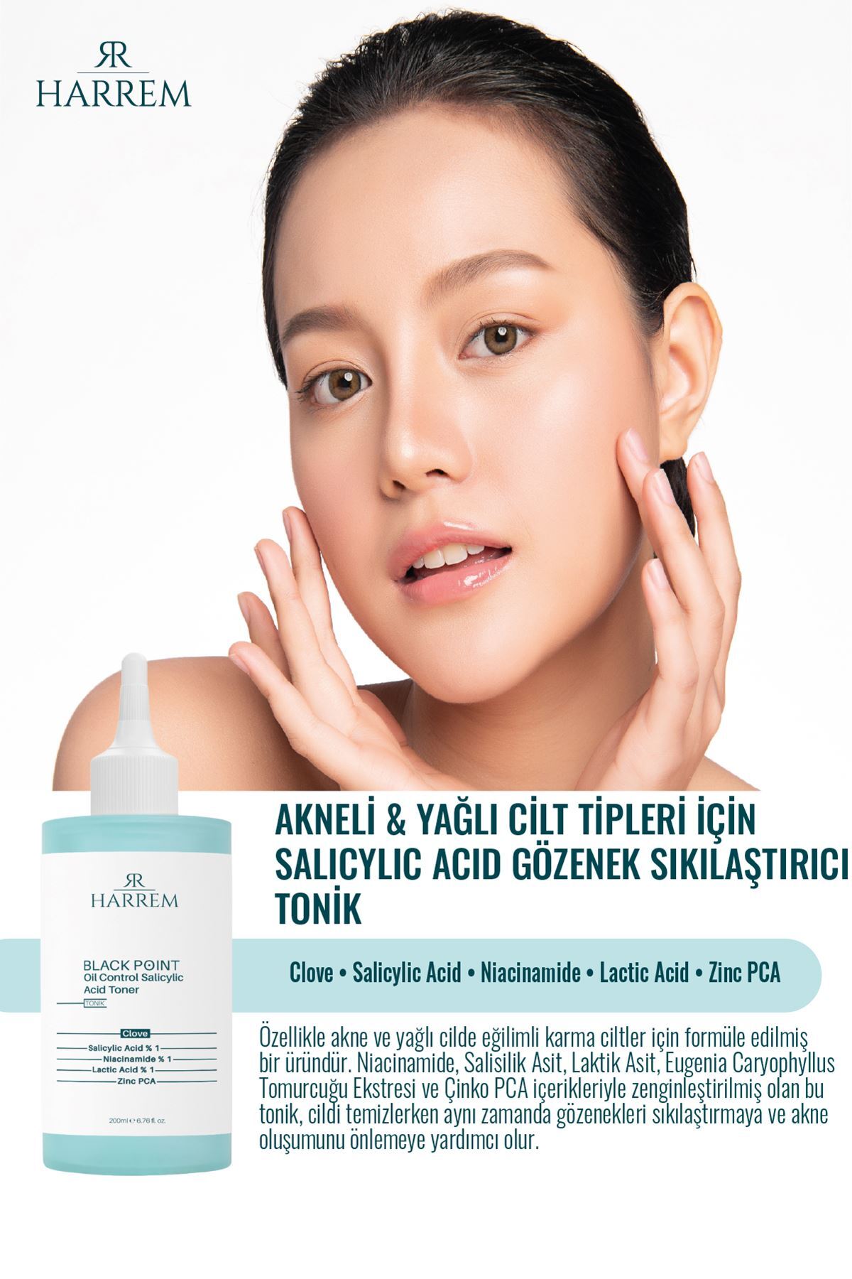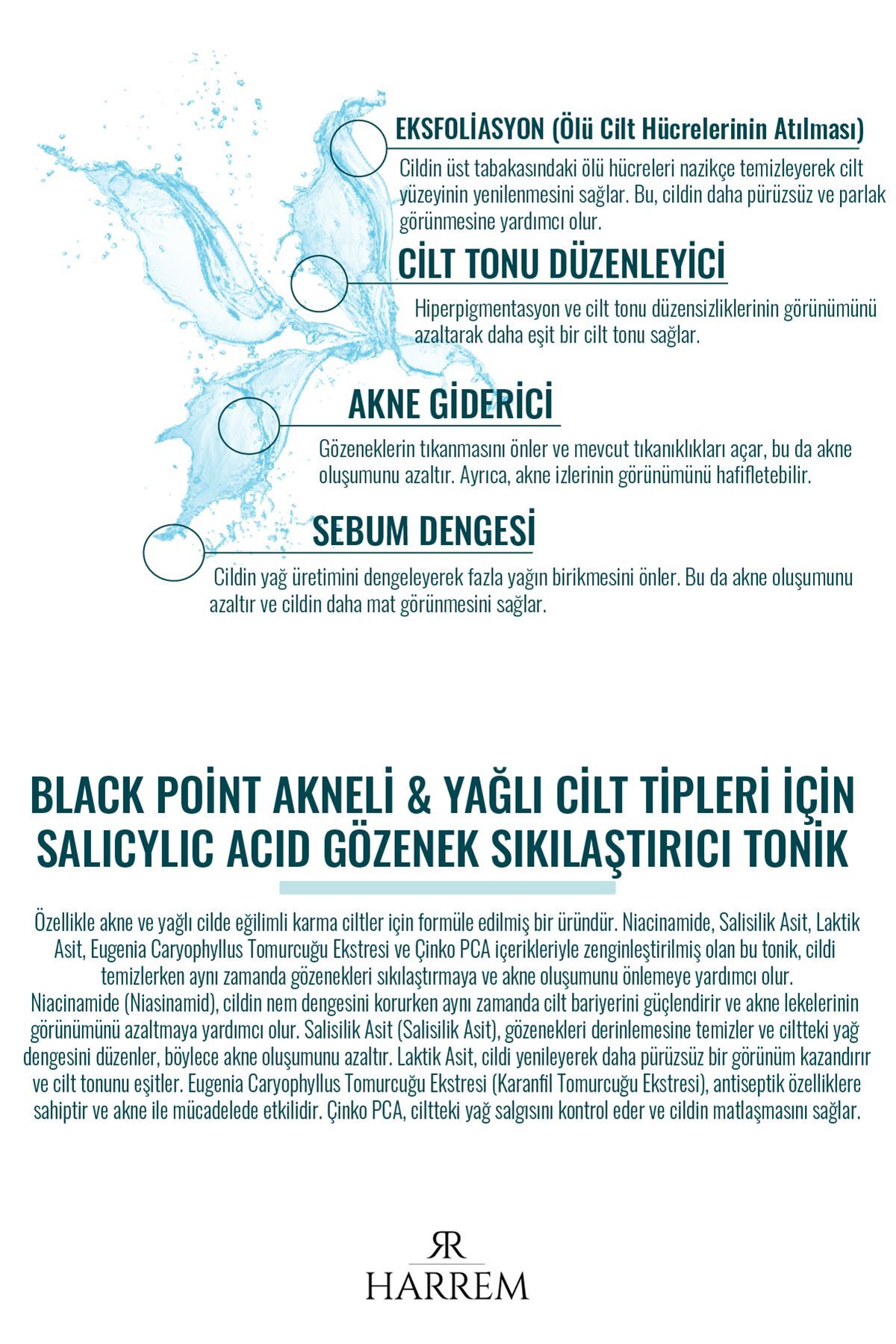Harrem Akneli&yağlı Cilt Tipleri Için Saliyclic Acid Gözenek Sıkılaştırıcı Tonik 200 ml Black P.int