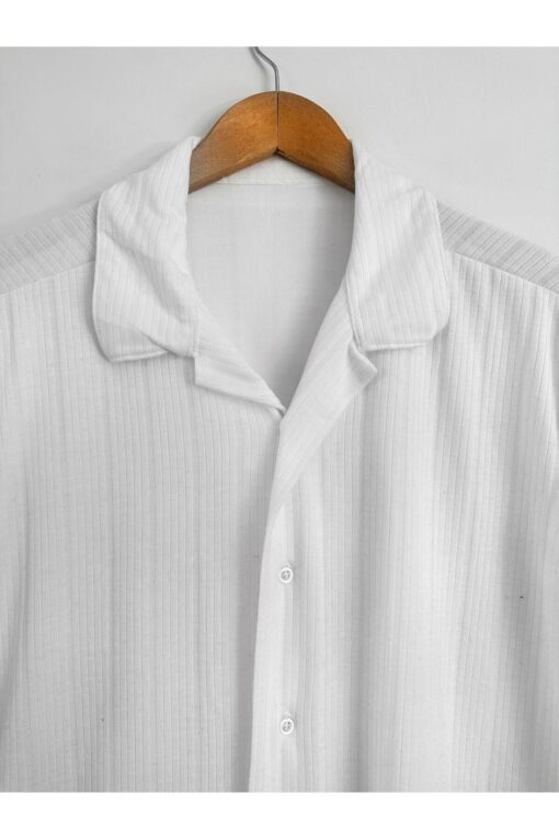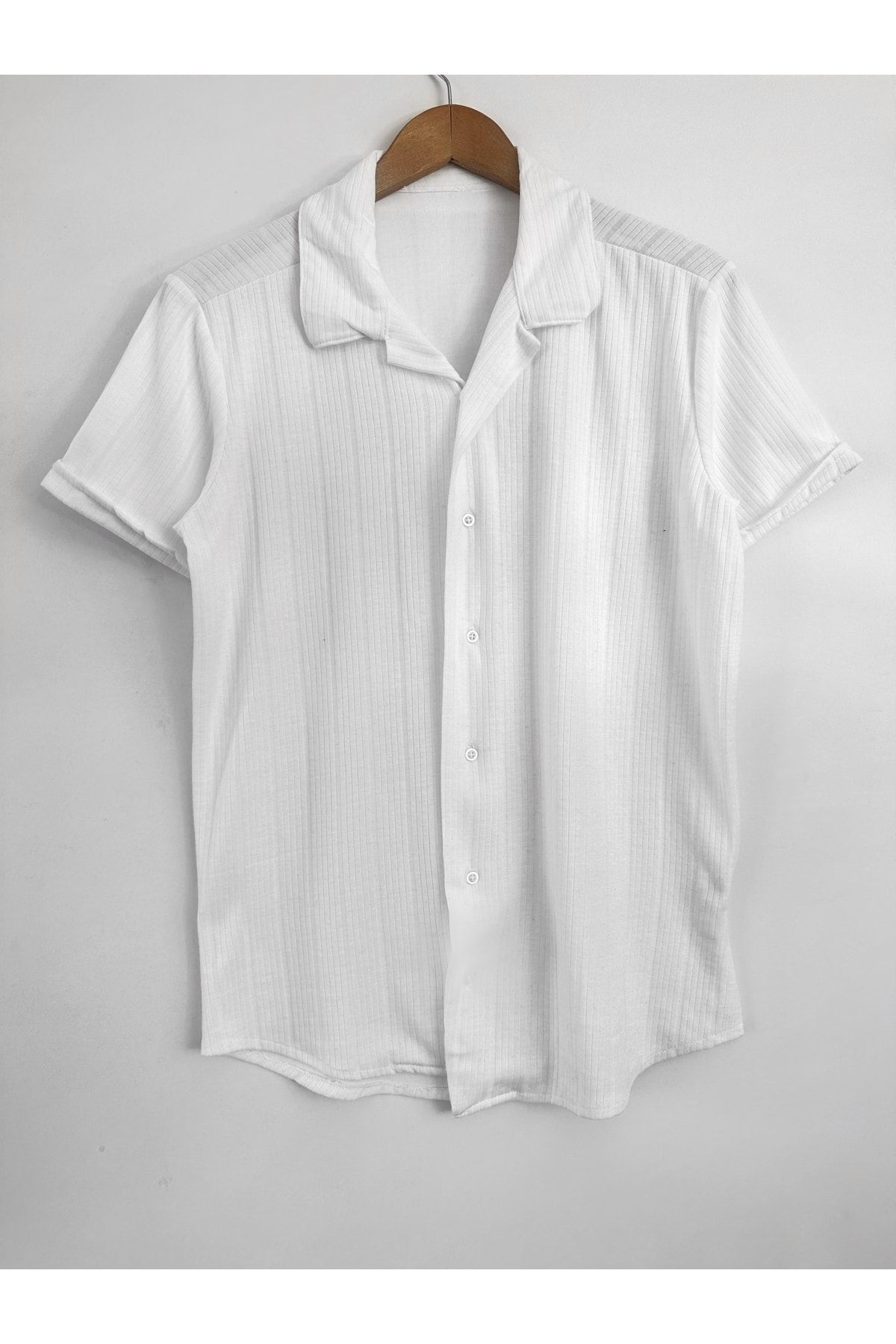HAWKKİNG Erkek Beyaz Desenli Pamuklu Yazlık Kısa Kollu Gömlek