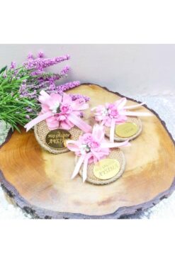 Hayaller Dükkanı 30 Adet Lazer Çiçekli Hasır Etiketli Tabla Bebek Magnetleri-Pembe