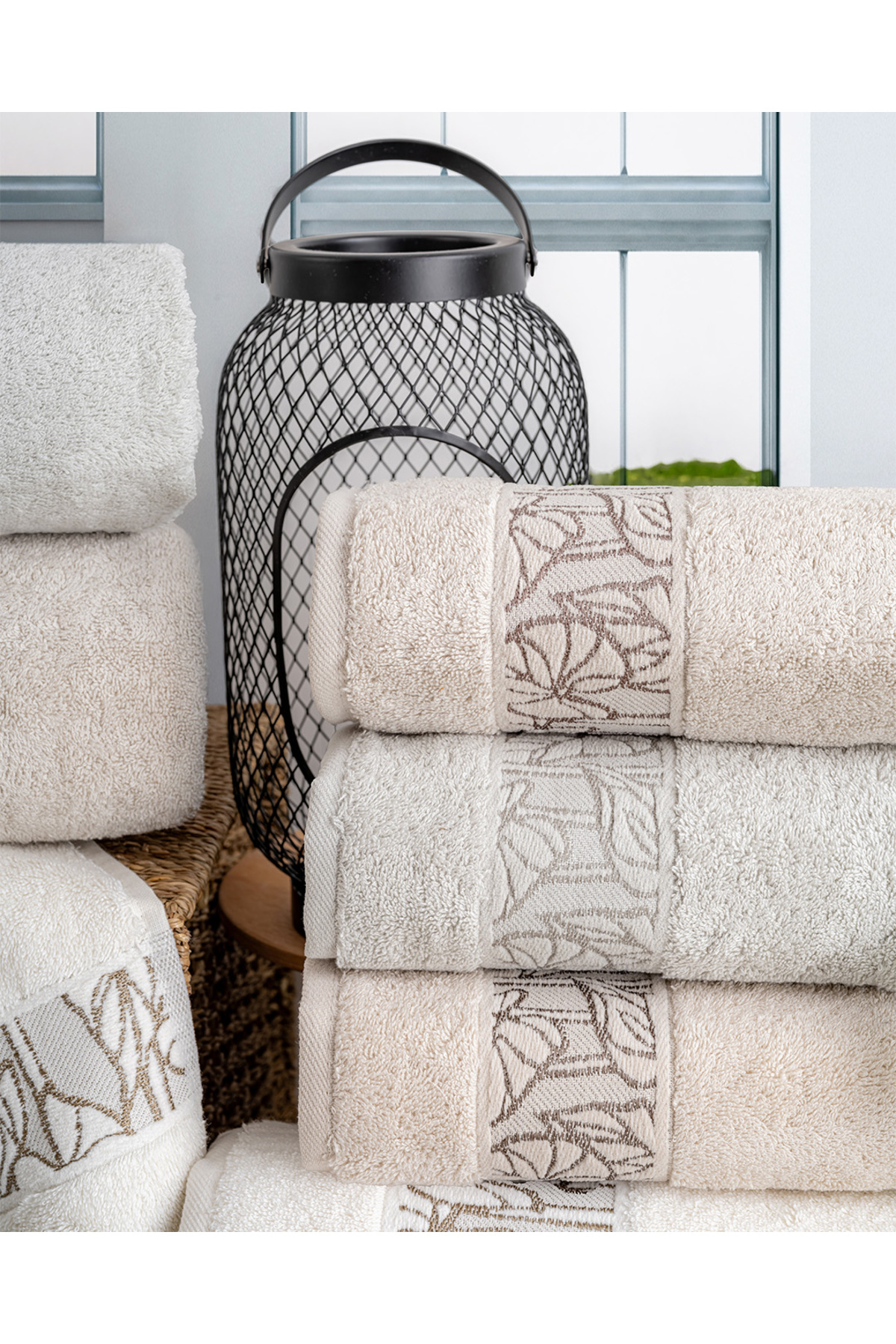 Hazangülü Buldan Üretimi Çeyizlik Lüks Jakarlı Garden 4’lü Banyo Havlusu I 70×140
