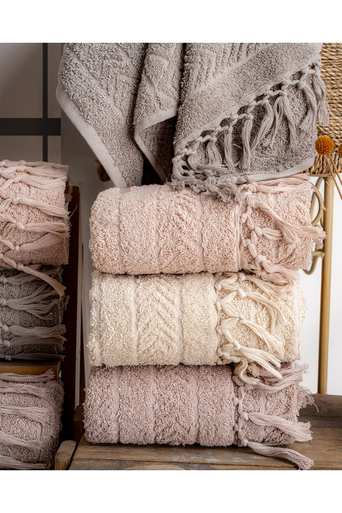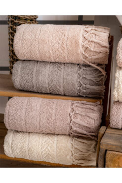 Hazangülü Buldan Üretimi Çeyizlik Lüks Jakarlı Hilda 4’lü El/yüz Havlusu I 50×90