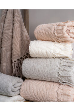 Merinos Ekru Pırıltı Çift Kişilik Embos Battaniye Kemik Silver