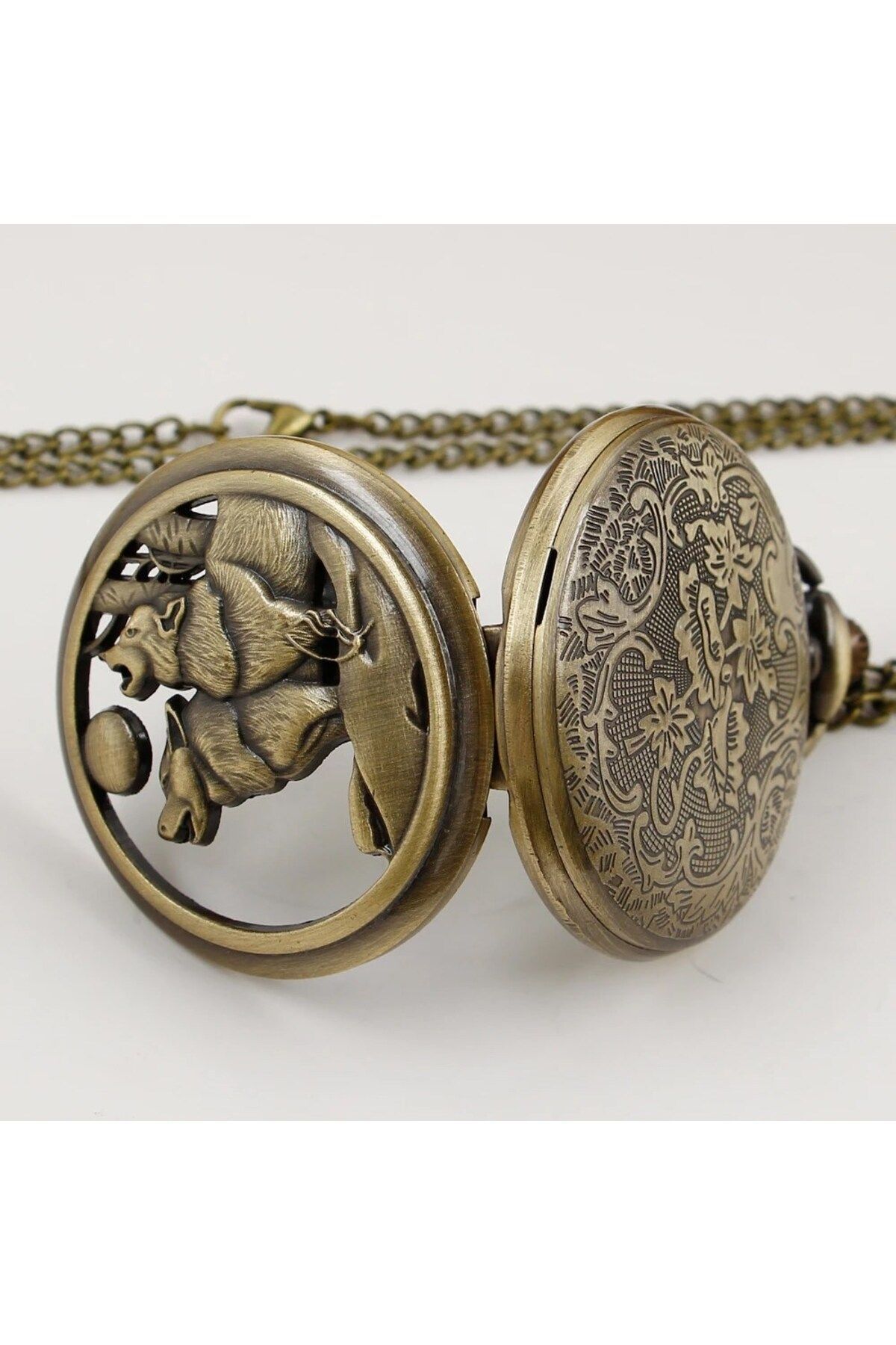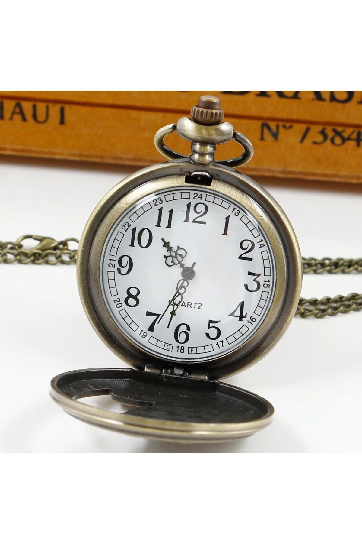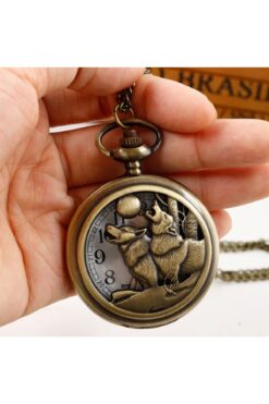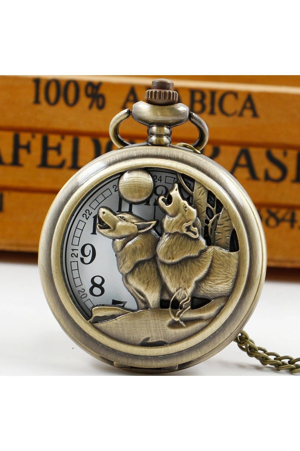 Hediye Sahibi Kişiye Özel Kurt Görünümlü Büyük Boy Kuvars Köstekli Kolye Saat