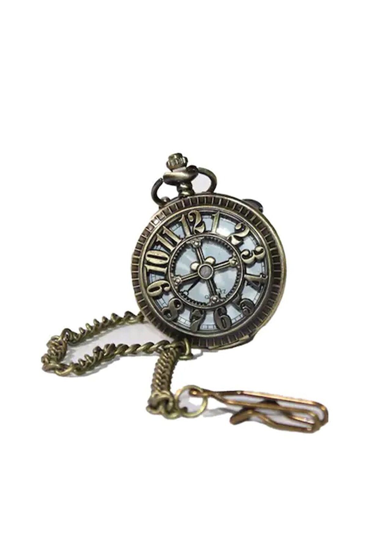 Hediye Sahibi Sayı Kabartmalı Zincirli Köstekli Cep Saati