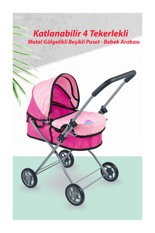 hediyecik Oyuncak Beşikli Metal Puset 4 Tekerlekli Bebek Arabası 65 Cm