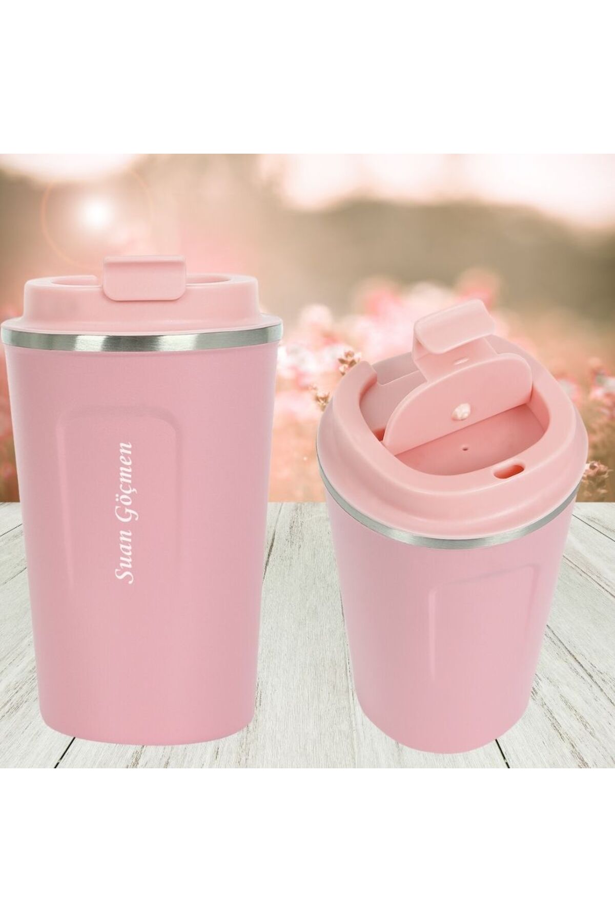 HediyesiBizden Kişiye Özel Isim Baskılı Çift Katmanlı Kaydırmaz Tabanlı Termos 380 ml