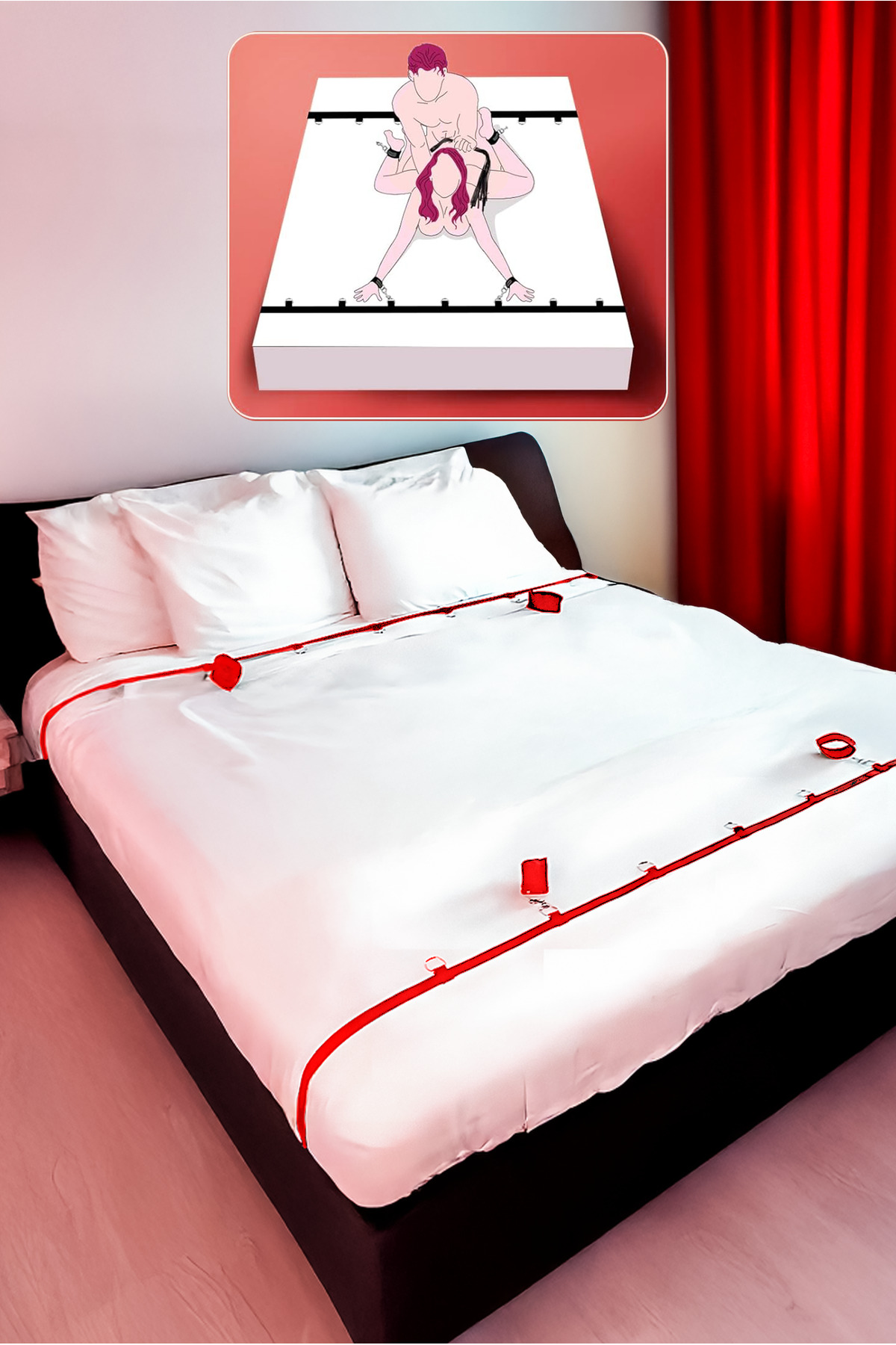 Heleni Bdsm Sınırlama Seti, Çiftler İçin Yatak Sabitleme Aksesuarları , Seks Kelepçeleri