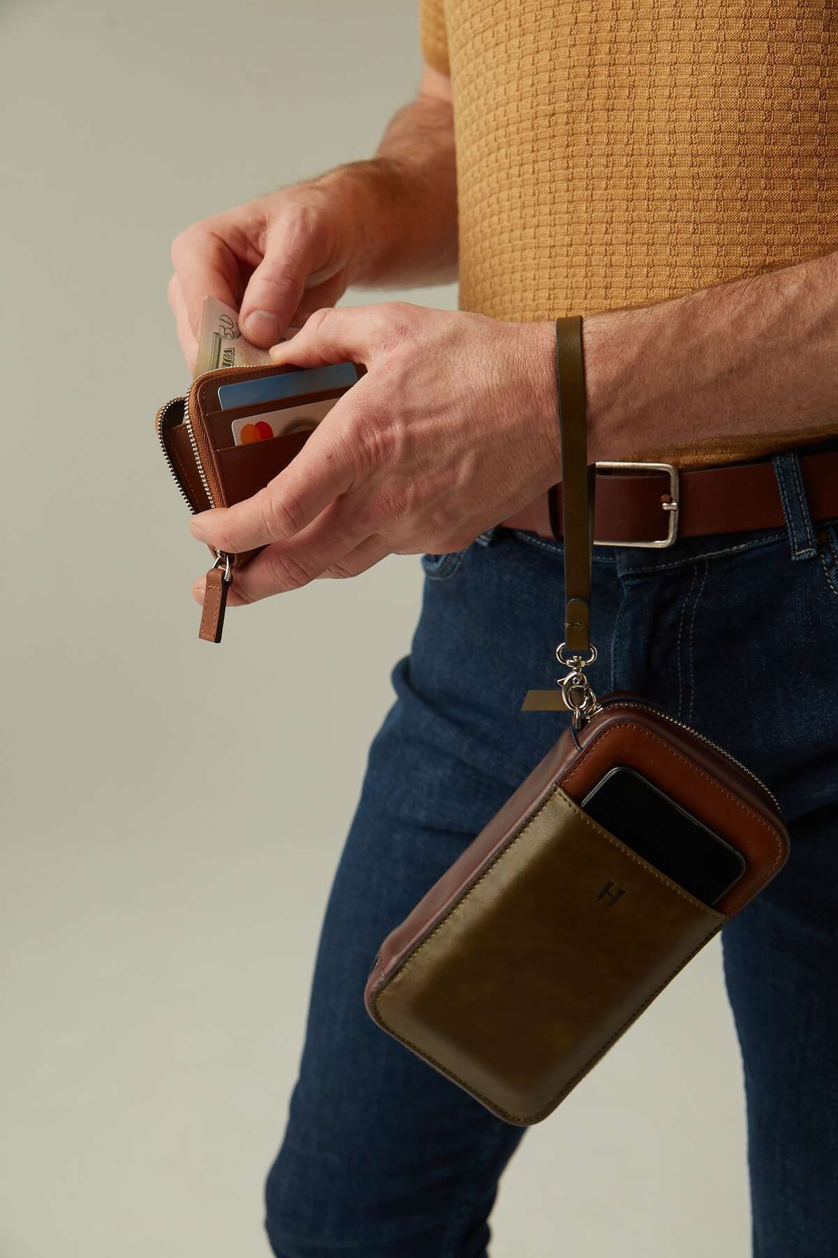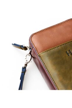 HELMBROOK Carlye Hakiki Deri Haki Taba Uniseks Ön Cepli Bileklikli Fermuarlı Rfid Korumalı Çanta