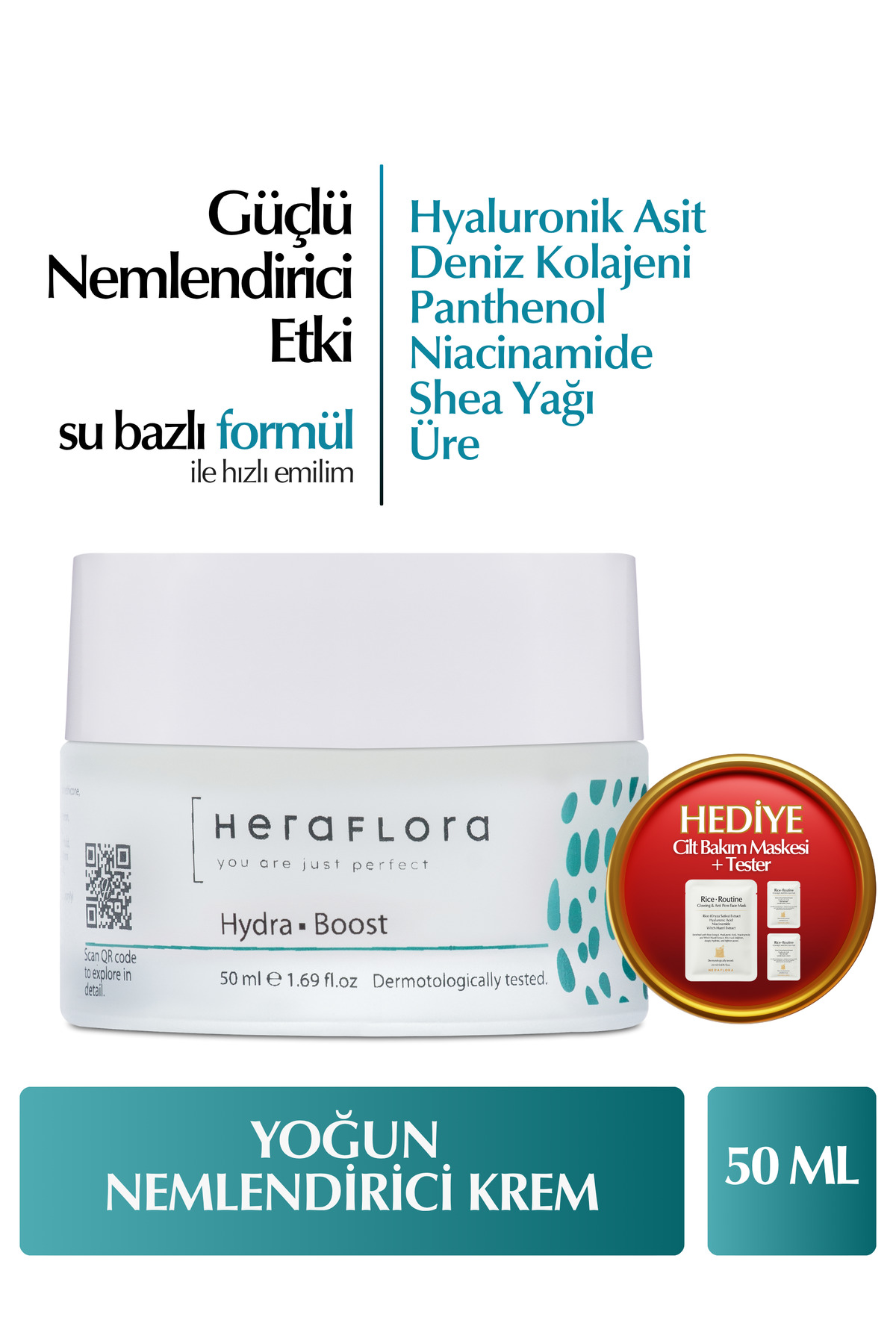 Heraflora Su Bazlı Yoğun Nemlendirici Yüz Kremi Hyalüronik Asit, Shea Yağı, Panthenol, Deniz Kolajen 50 ml ürünü ucuz fiyat, hızlı kargo imkanı ile hemen sitemizden sipariş verin.