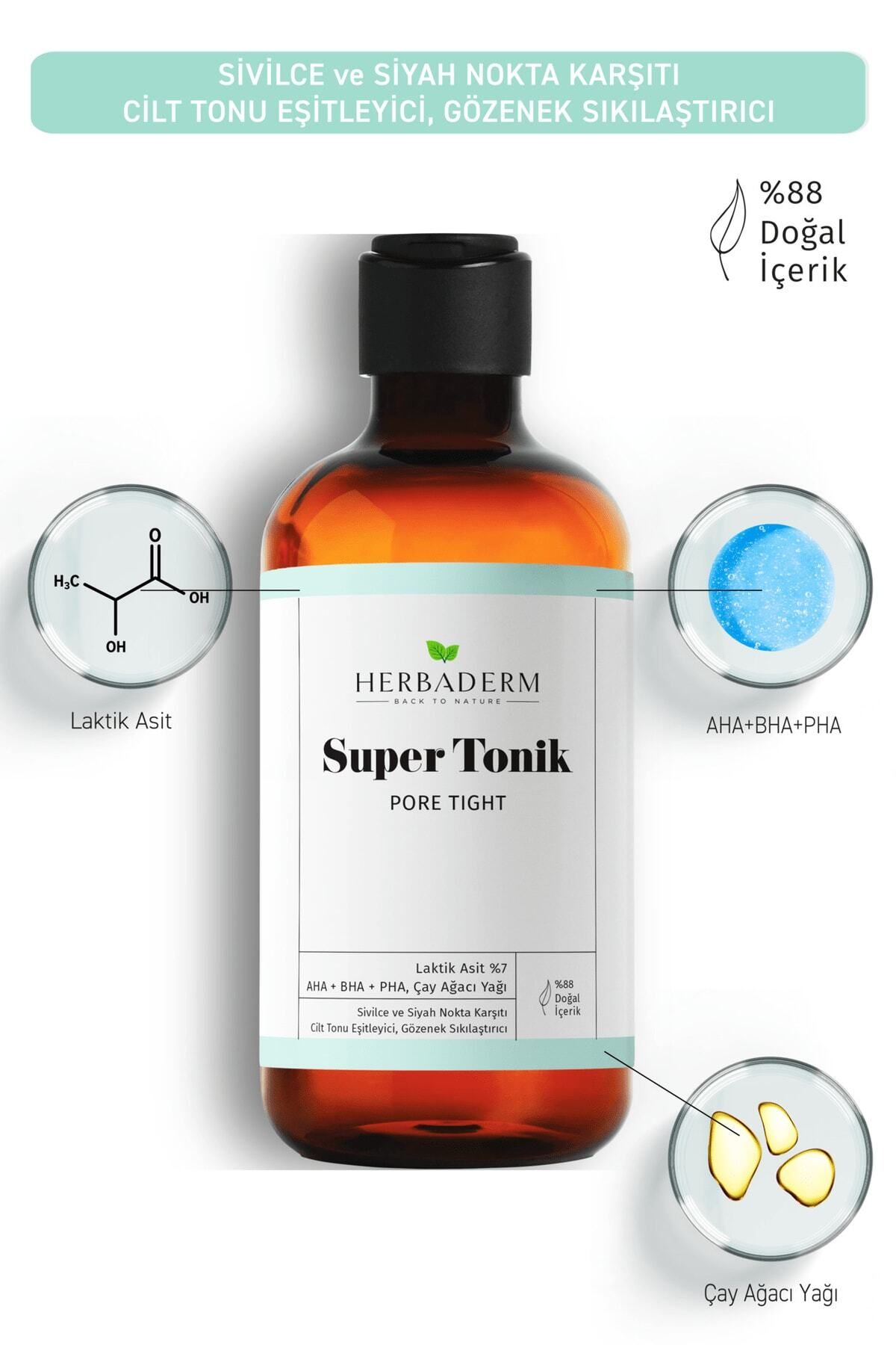 Herbaderm Pore Tight Sivilce, Siyah Nokta Karşıtı Super Tonik Laktik Asit %7