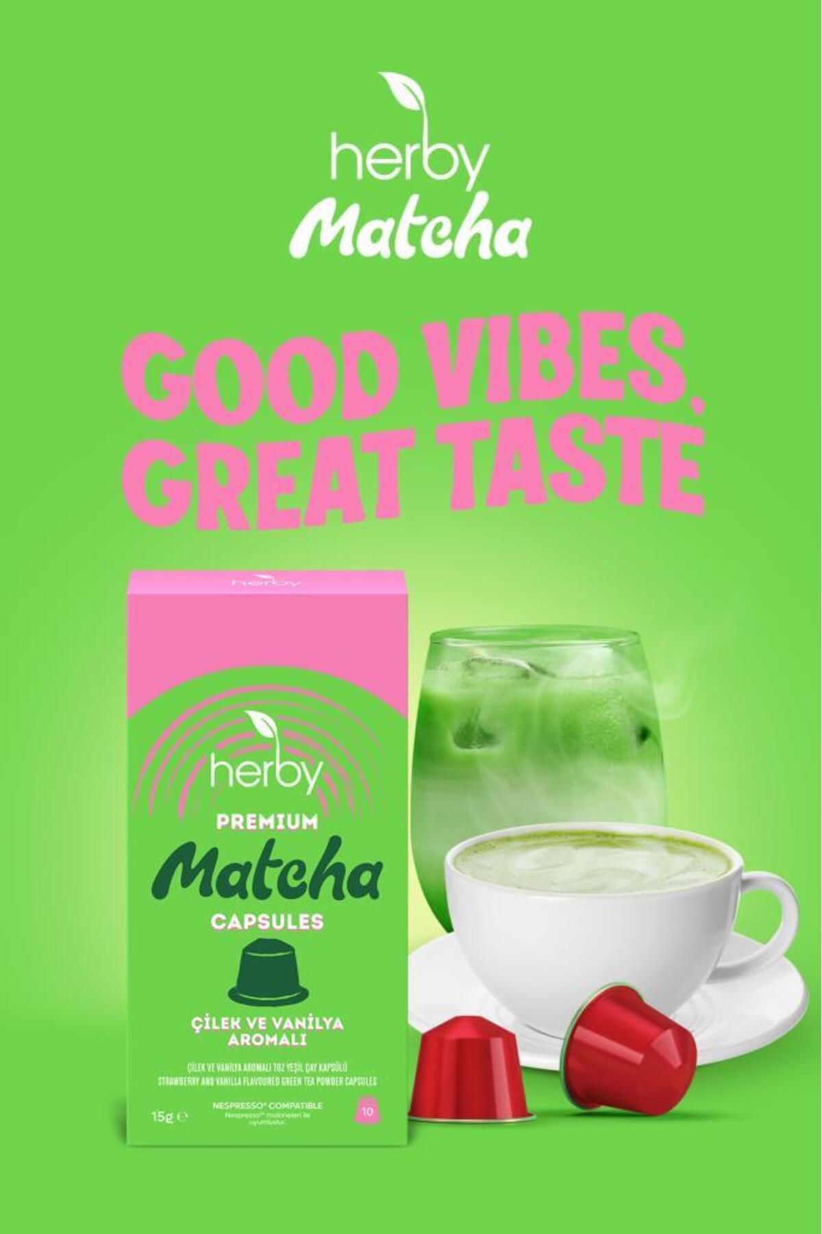 Herby Premium Matcha Kapsül – Nespresso Uyumlu, Çilek ve Vanilya Aromalı, 10’lu Paket