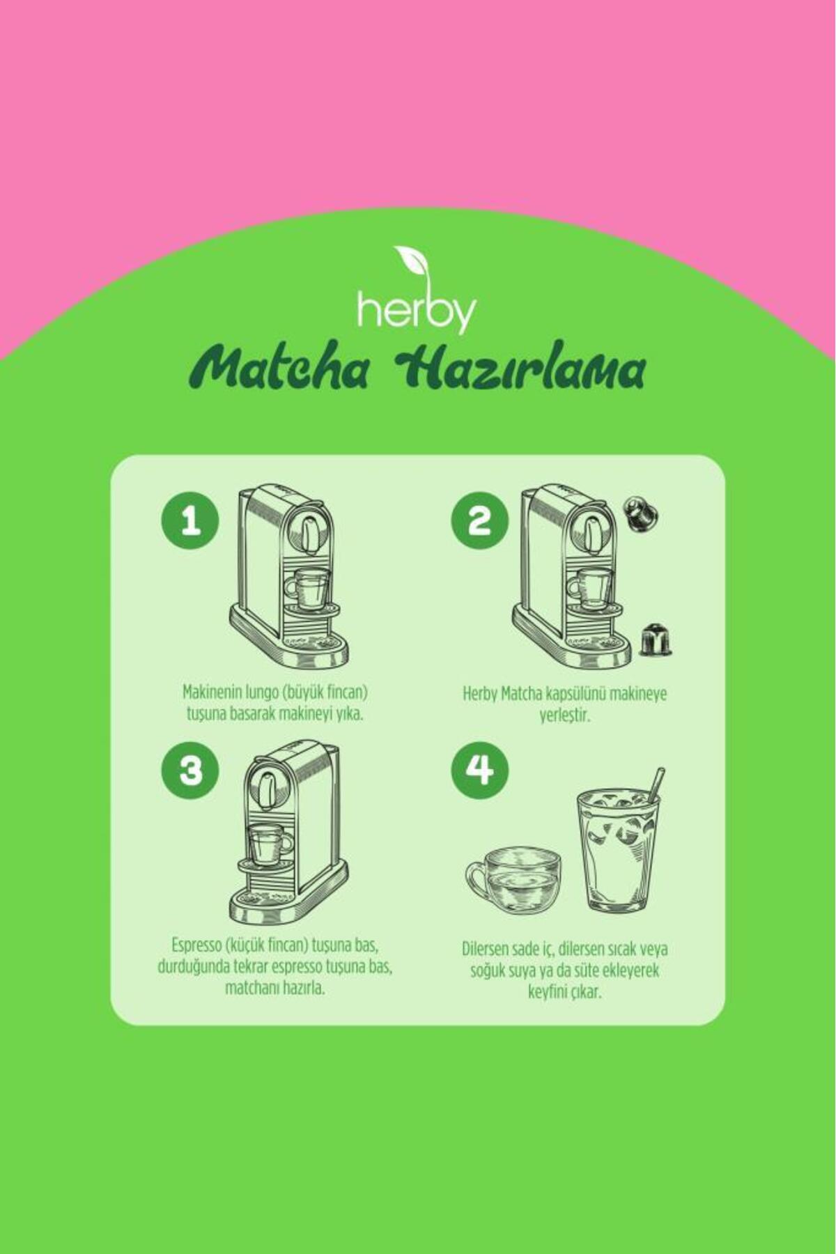 Herby Premium Matcha Kapsül - Nespresso Uyumlu, Çilek ve Vanilya Aromalı, 10'lu Paket ürünü ucuz fiyat, hızlı kargo imkanı ile hemen sitemizden sipariş verin.