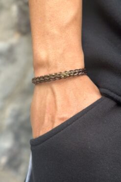 HERİF Aksesuar Erkek Klasik Örgü Kelepçe Çelik Bileklik – Bakır Renk