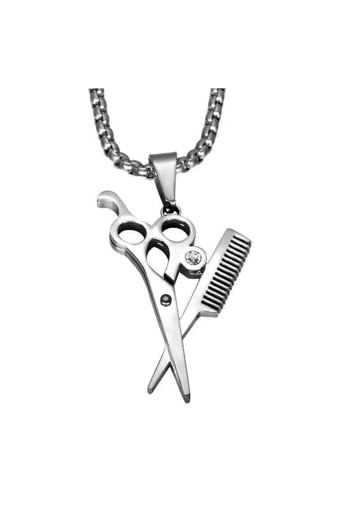 Herşey Nota Berber Makas Tarak Kolye Paslanmaz Çelik Kadın – Erkek
