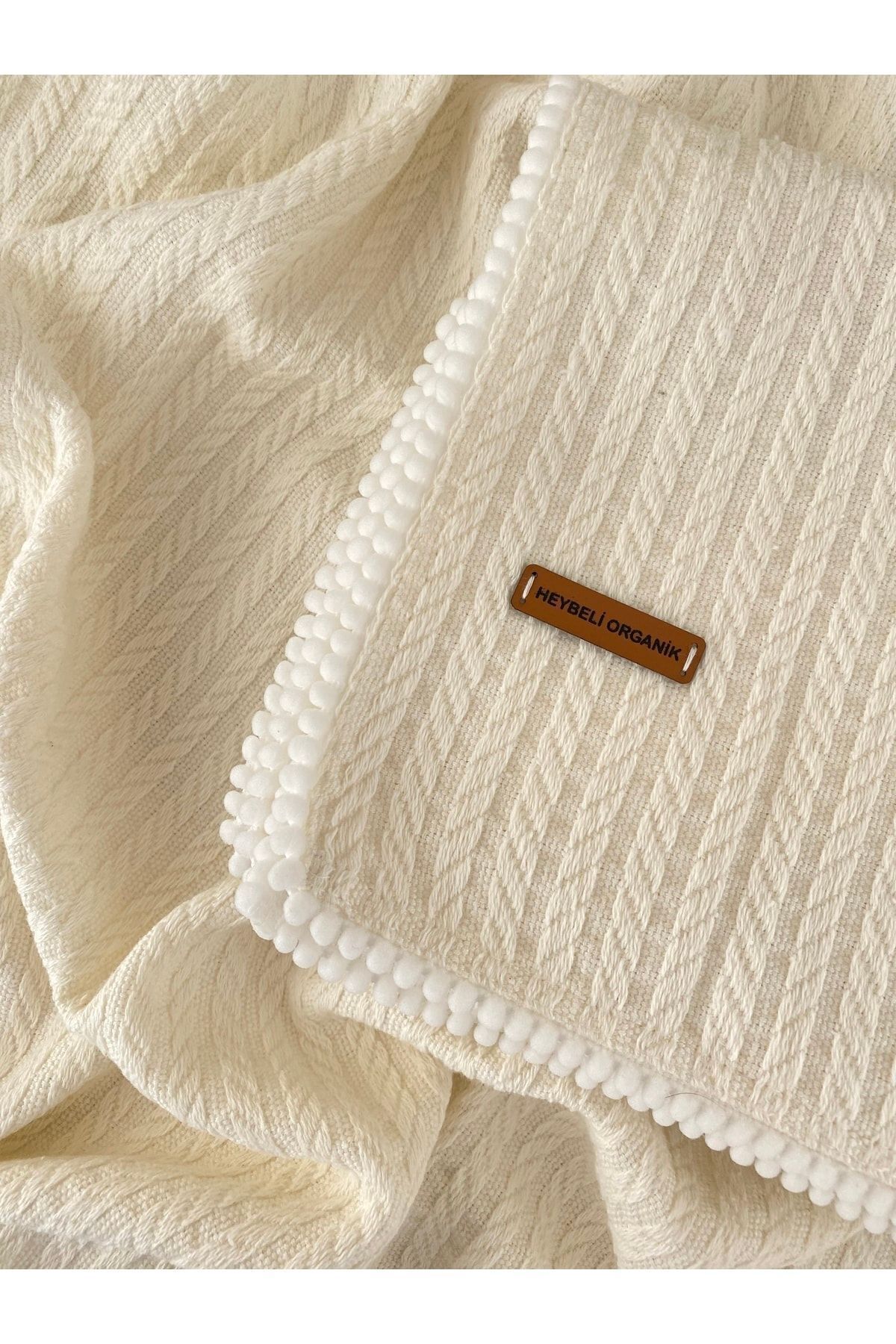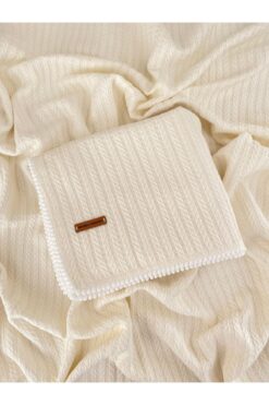 HEYBELİ ORGANİK Örgü Desen %100 Pamuk Bebek Pike Battaniye Ekru 120×100 Cm