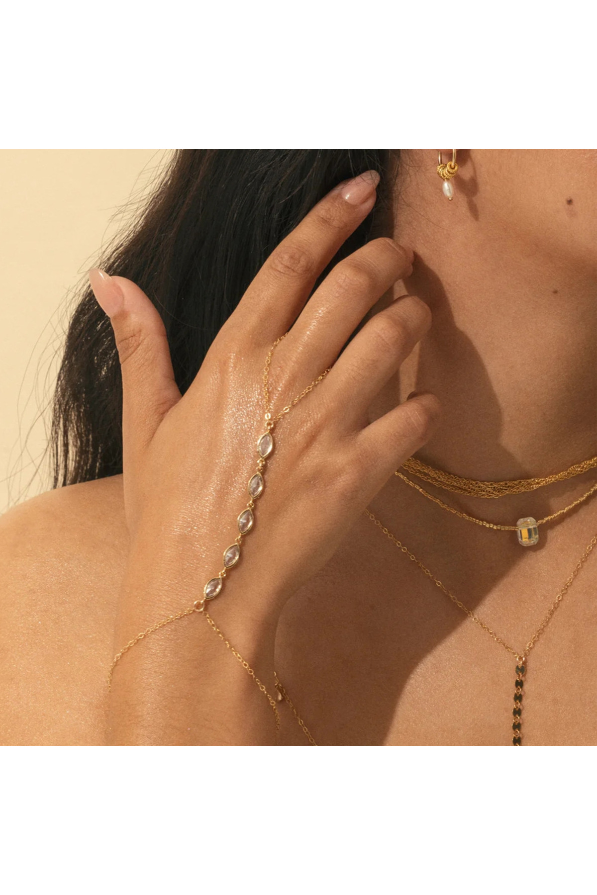 pop up store 14k Altın Kaplama Üçgen Model Taşlı Şahmeran / El Aksesuarı