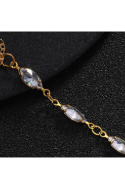 YOUES JEWELRY ÇELİK 14k Altın Renk Şahmeran Bileklik Gold Kadın Yonca Taşlı Şahmeran