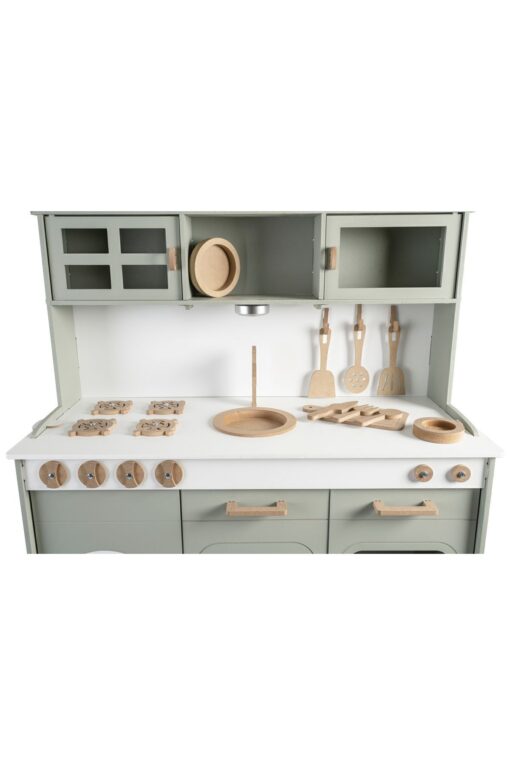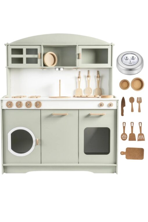 HOBBY HOUSE Yeşil Ahşap Oyuncak Mutfak Seti Ledli 9 Parça Servis Seti