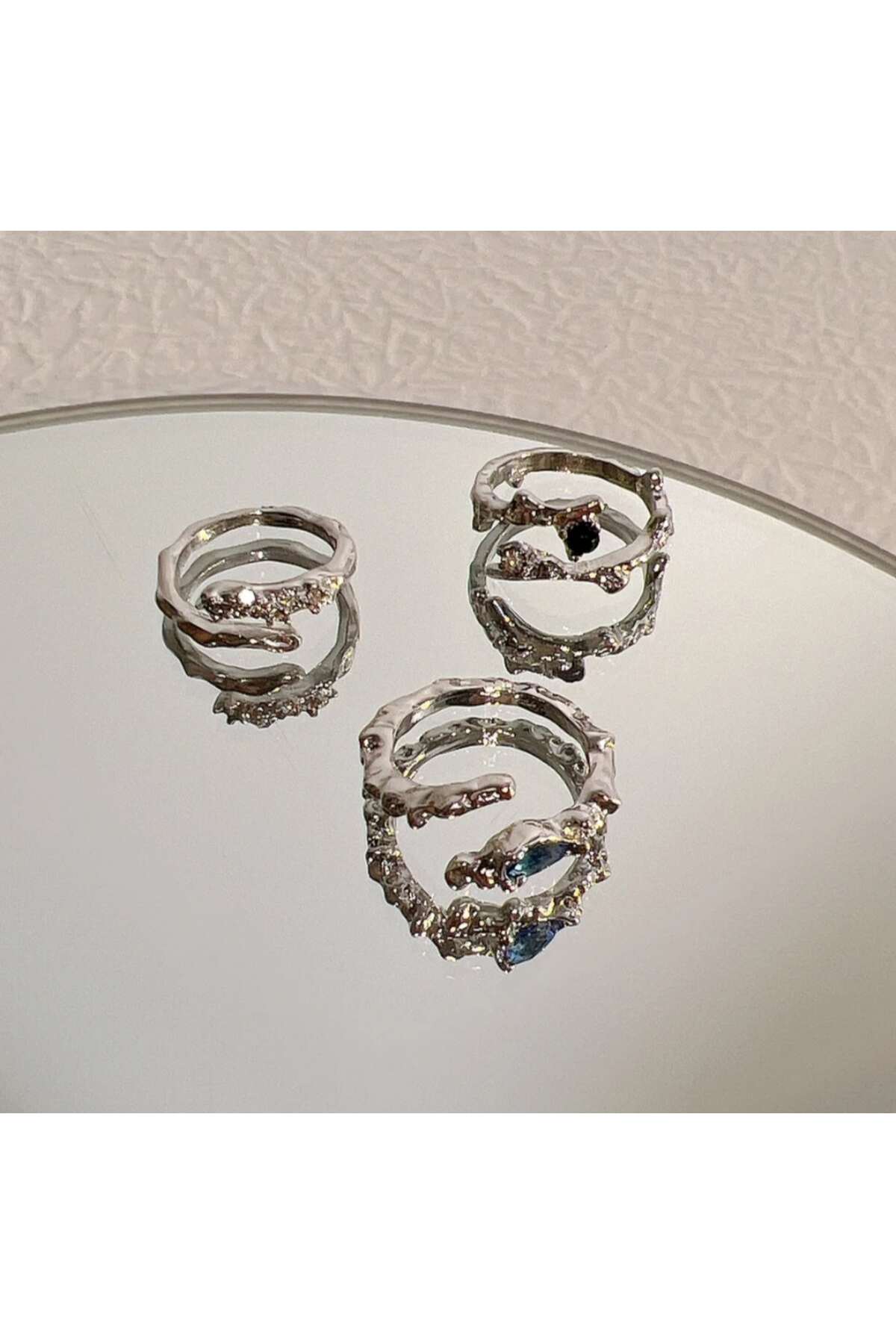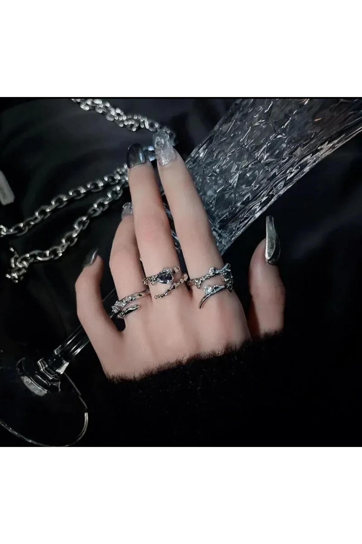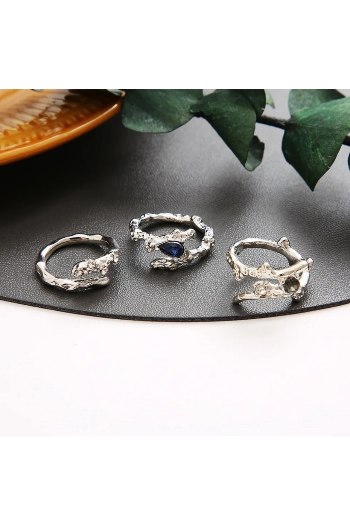HOBİSY GIFT SHOP Vintage Tarz Gümüş Renk Ayarlanabilir 3 lü Yüzük Seti