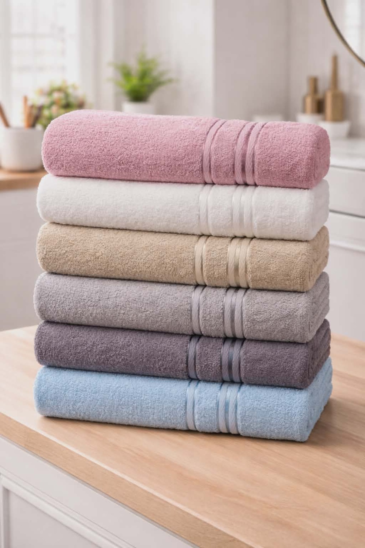 HOME MODE 3’lü Banyo Havlusu Seti 70×140 cm Yumuşak & Emici & Gündelik Kullanıma Uygun