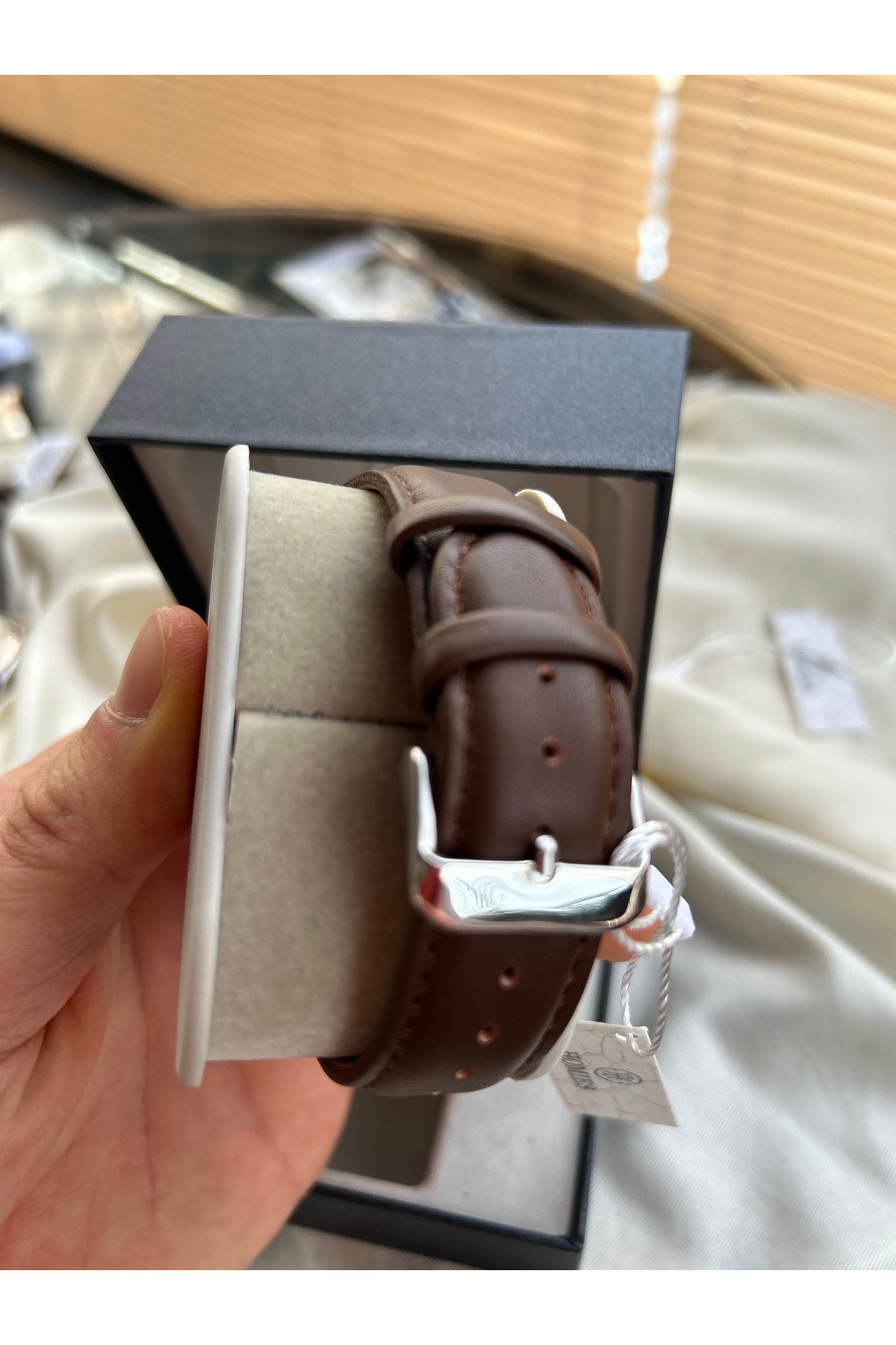 Sobce Retro Minimal Şık Deri Acı Kahve Kordon Kadın Kol Saati