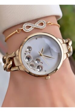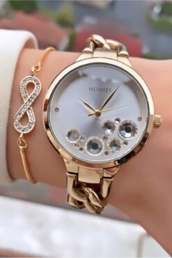 Homies Marka Altın Renk 2 Yıl Garantili, Paslanmaz, Su Geçirmez Kadın Kol Saati – +Hediyeli