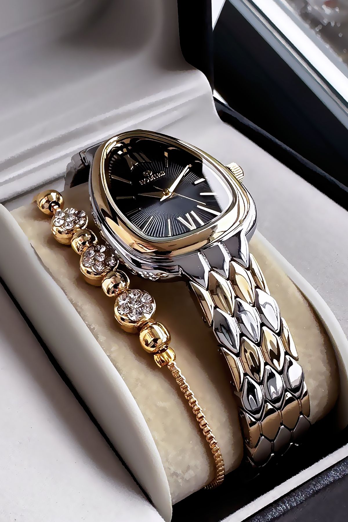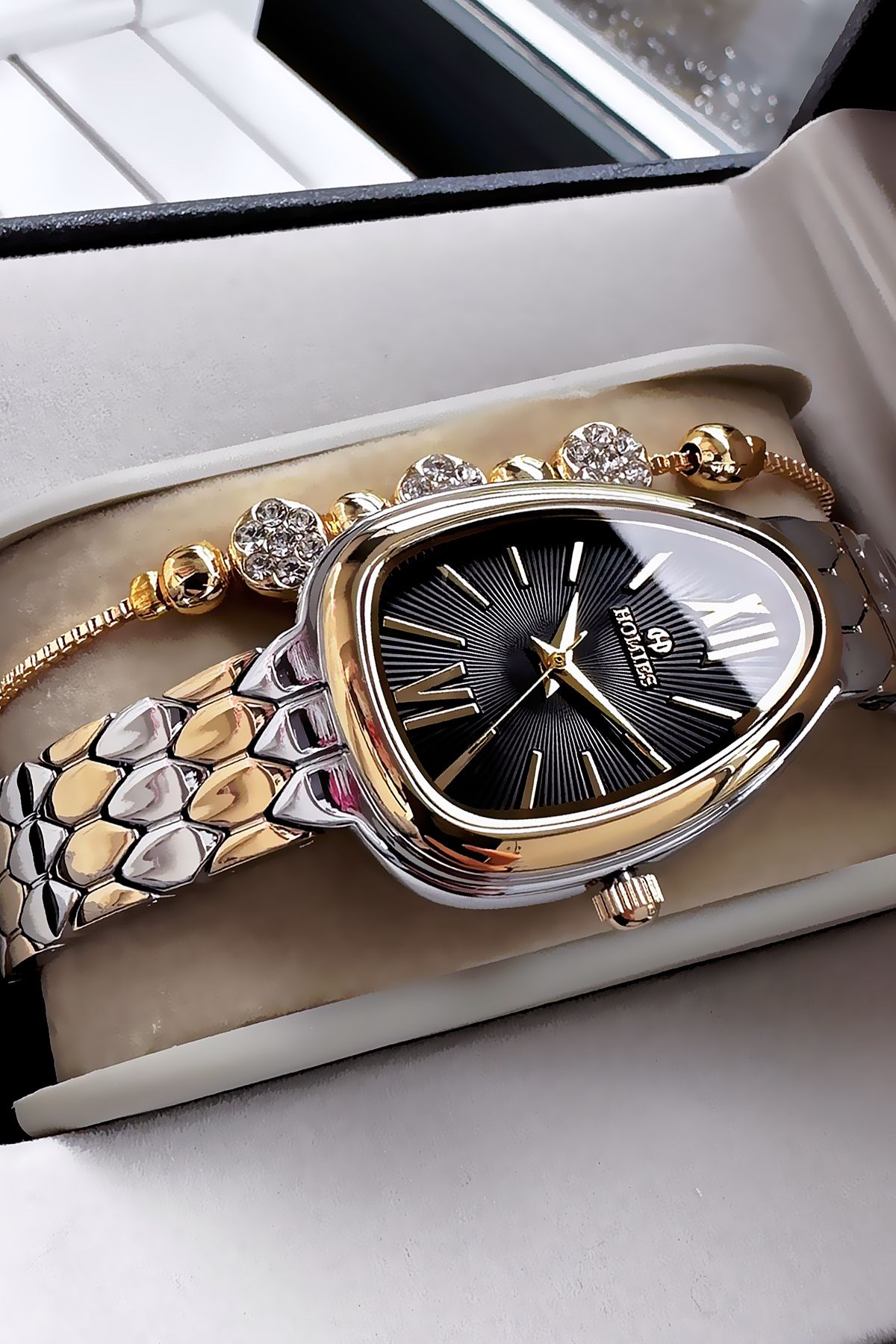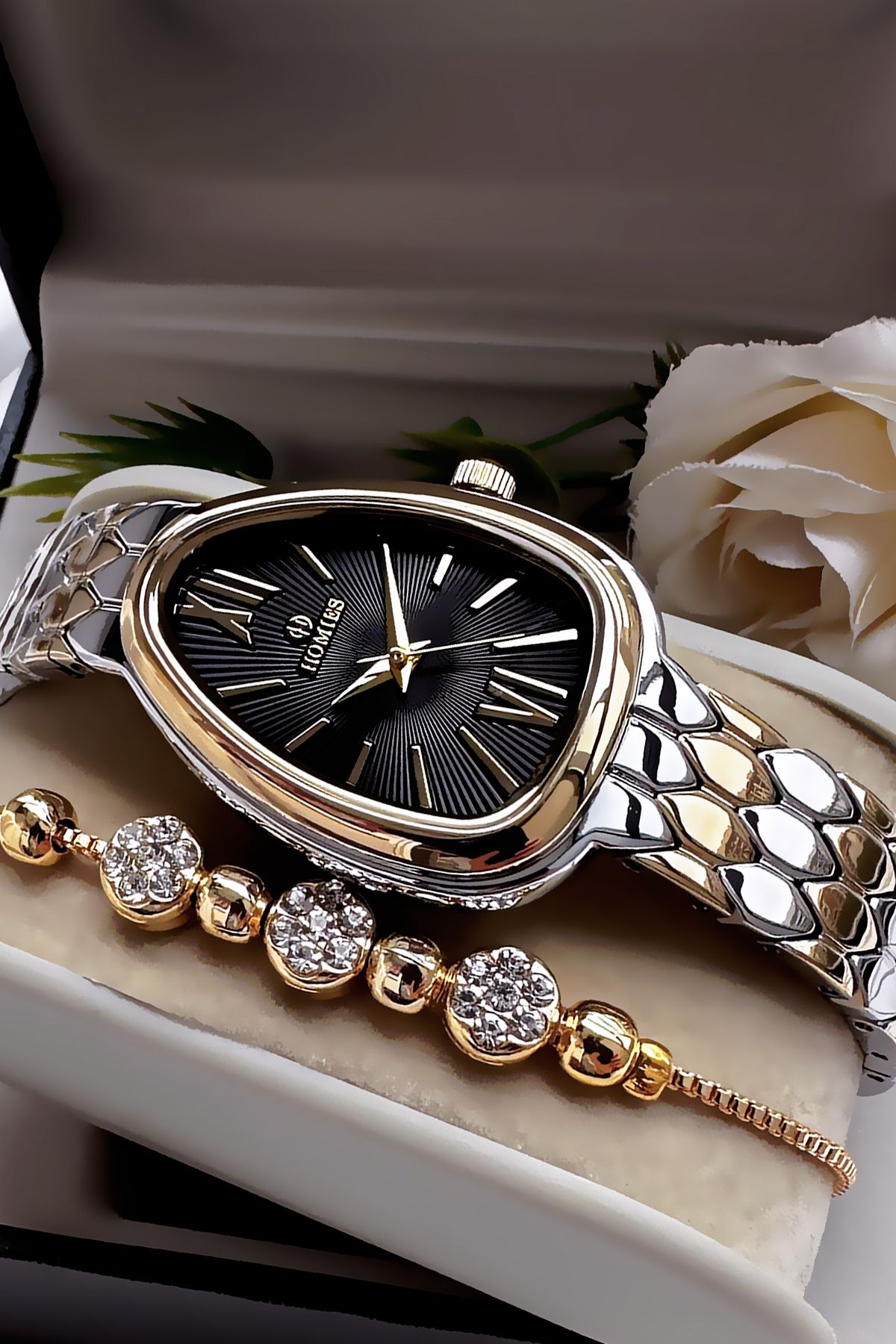 Homies Özel Kutulu Yılan Modeli Kadın Kol Saati Su Geçirmez iki Renk Çelik Kordon + Bileklik HMBY2059C3