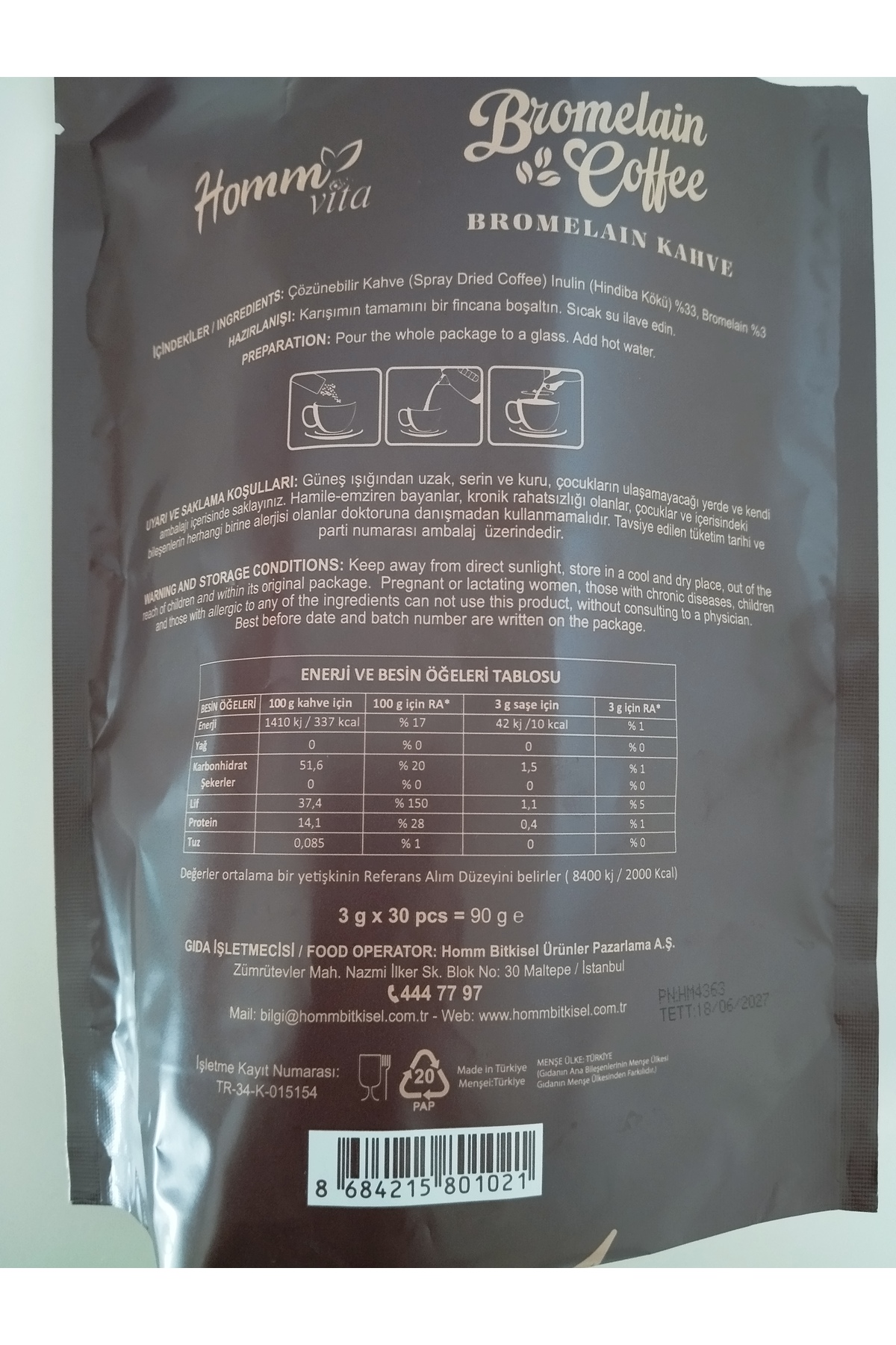Homm Bitkisel Homm Vita Bromelain Kahve 3gr X 30 Adet – Aylık Paket