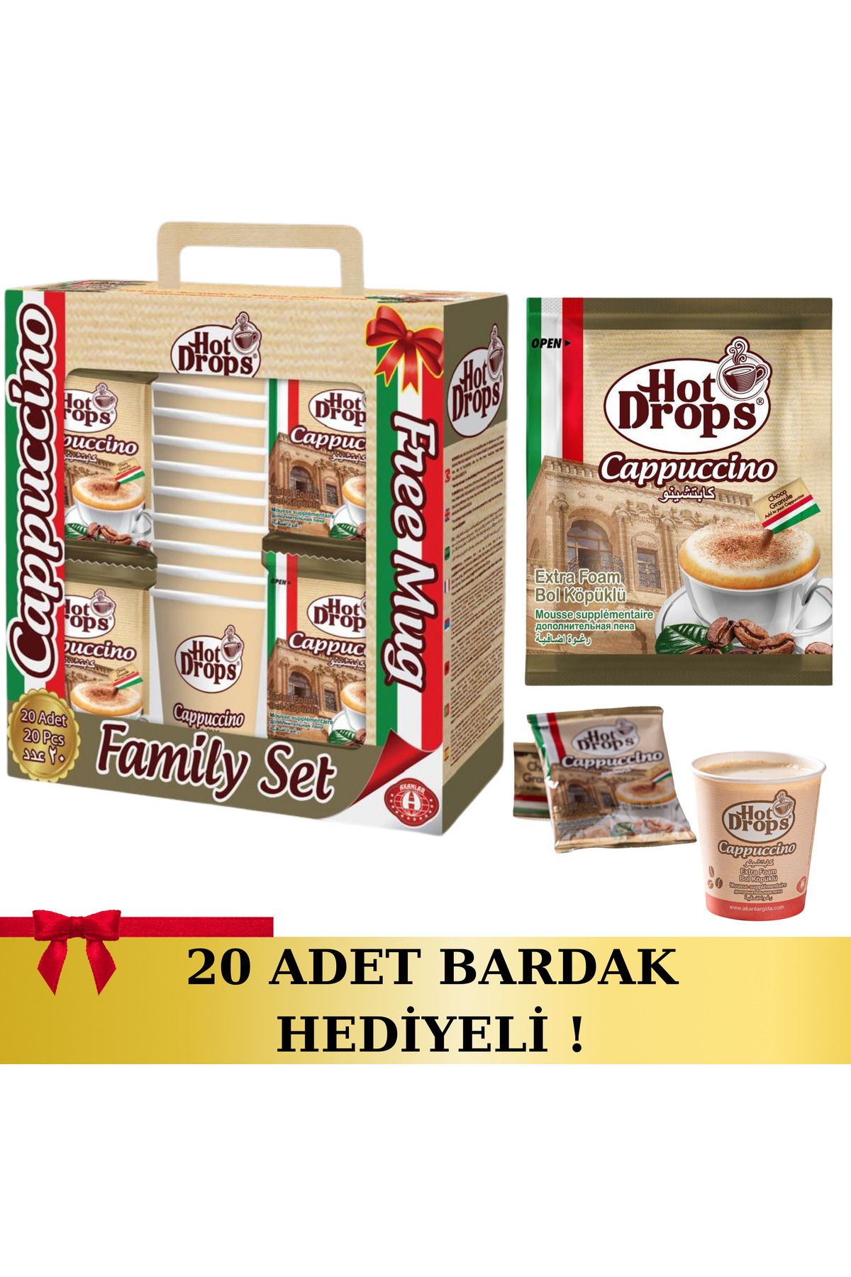 HOT DROPS Cappuccino Hazır Kahve Bol Köpüklü, Çikolata Granüllü 25gr X 20 Adet (20ADET BARDAK HEDİYELİ)