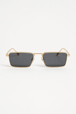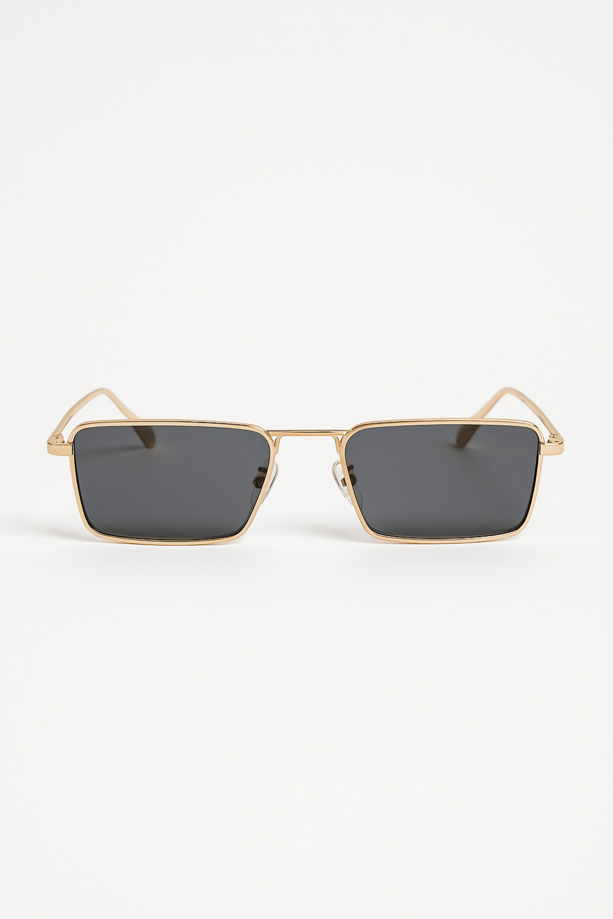 Houseofeyeris AURIX ALTIN METAL ÇERÇEVE İnce Dikdörtgen GÜNEŞ GÖZLÜĞÜ – Siyah Lens Unisex Minimal Tasarım – UV400