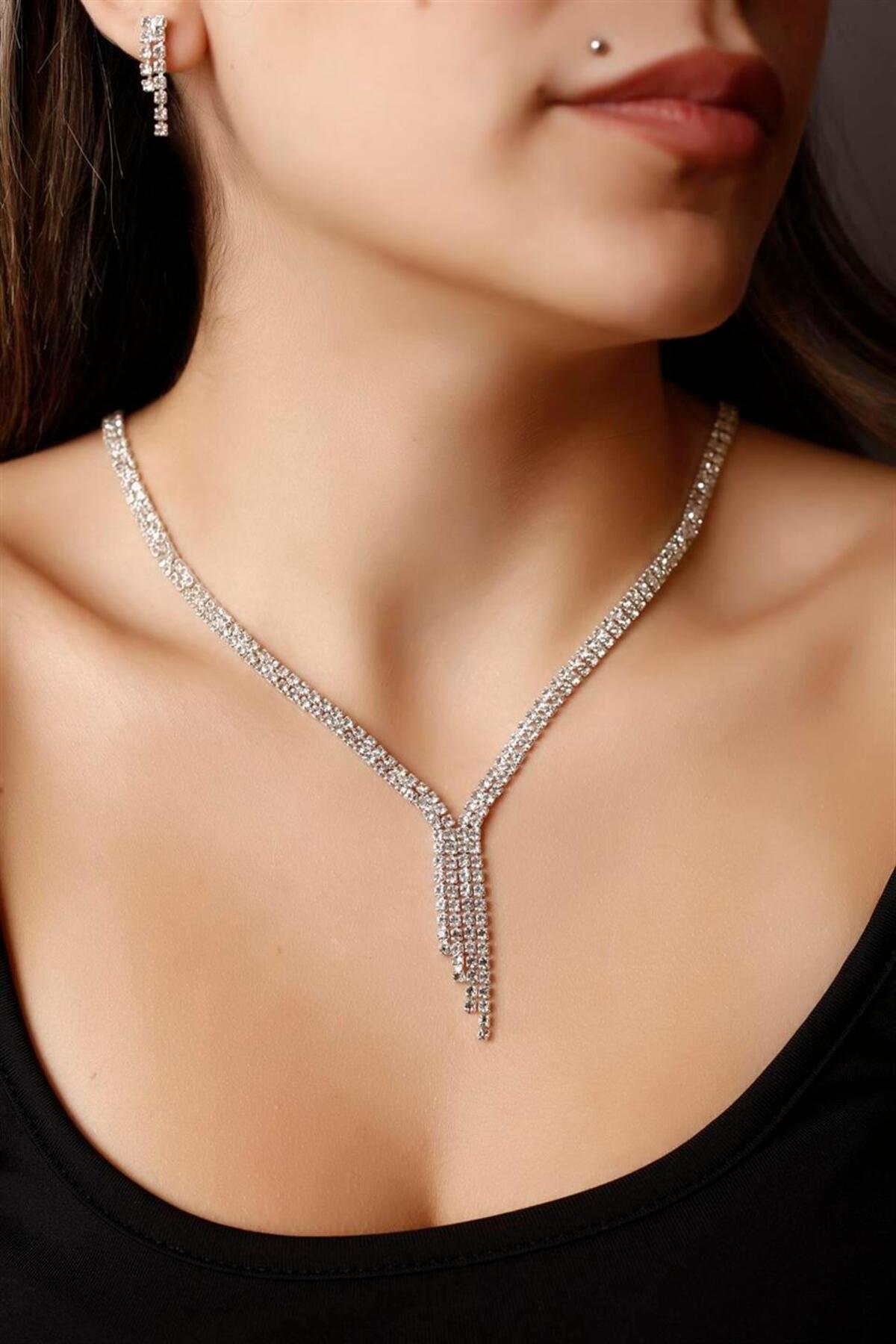Ressia Gümüş Kaplama Zirkon Taşlı Su Yolu Kolye & Bileklik & Küpe Seti