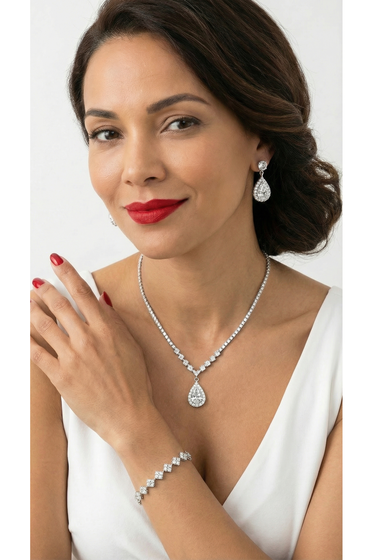 HUBANN Pırlanta Görünümlü Su Yolu Zirkon Taşlı 3’lü Set Kolye Küpe Bileklik VIP Abiye Nişan Gelin Takı Seti ürününü en uygun fiyata kozmetikara.com sitemizden sipariş verebilirsiniz.