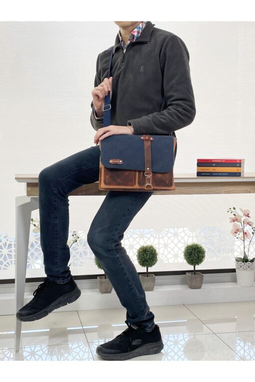 Hulganz Halwara Mumlu Kanvas & Hakiki Deri Postacı Çantası (Messenger Bag) 22×31 cm / 13 inç