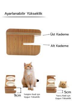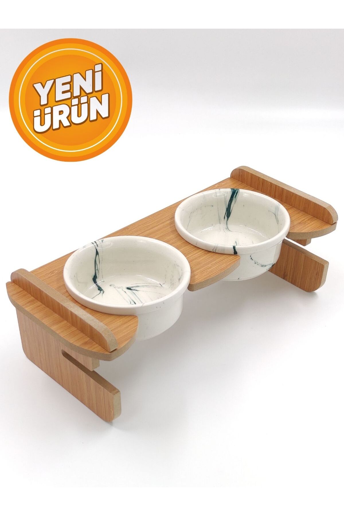 hural ahşap dekorasyon YÜKSEKLİĞİ AYARLANABİLİR SERAMİK KASELİ AHŞAP STANDLI MAMA VE SU KABI