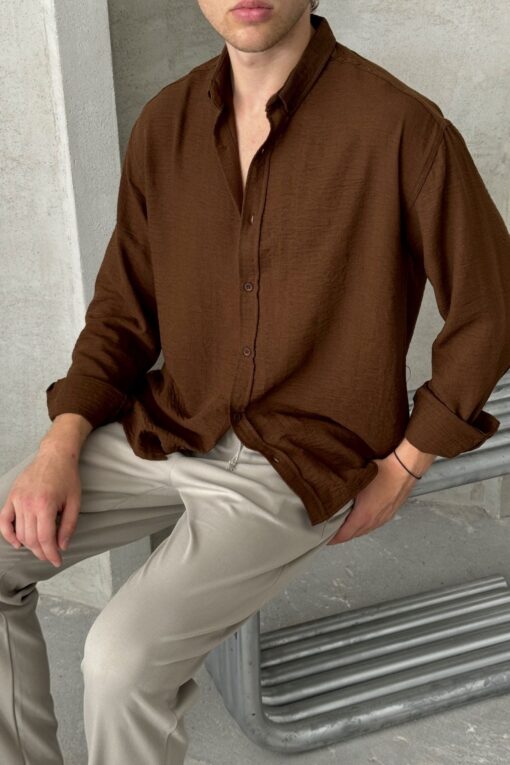 HYMAN Erkek Oversize Kesim Keten Görünümlü Gömlek