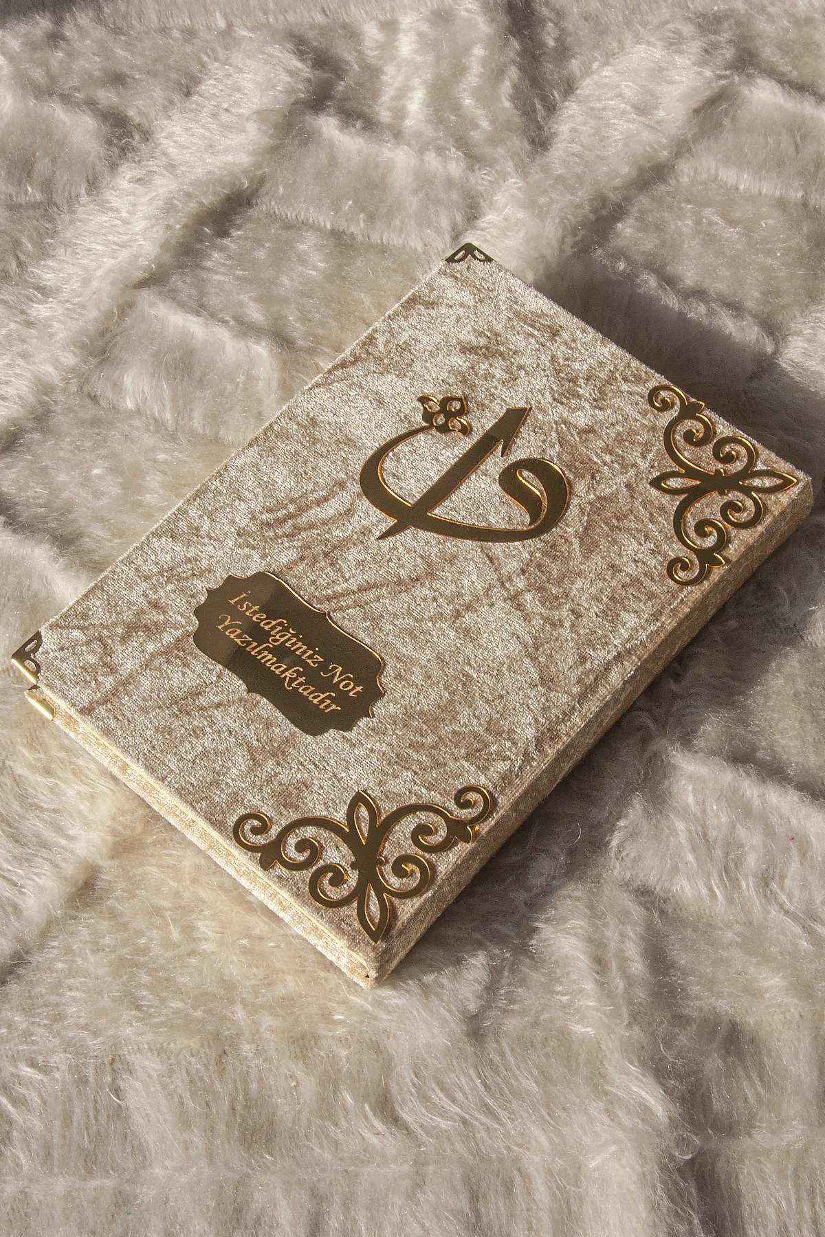 ihvan online Hediyelik Kadife Kaplı Isme Özel Pleksi Desenli Arapça Orta Boy Kuranı Kerim Gold