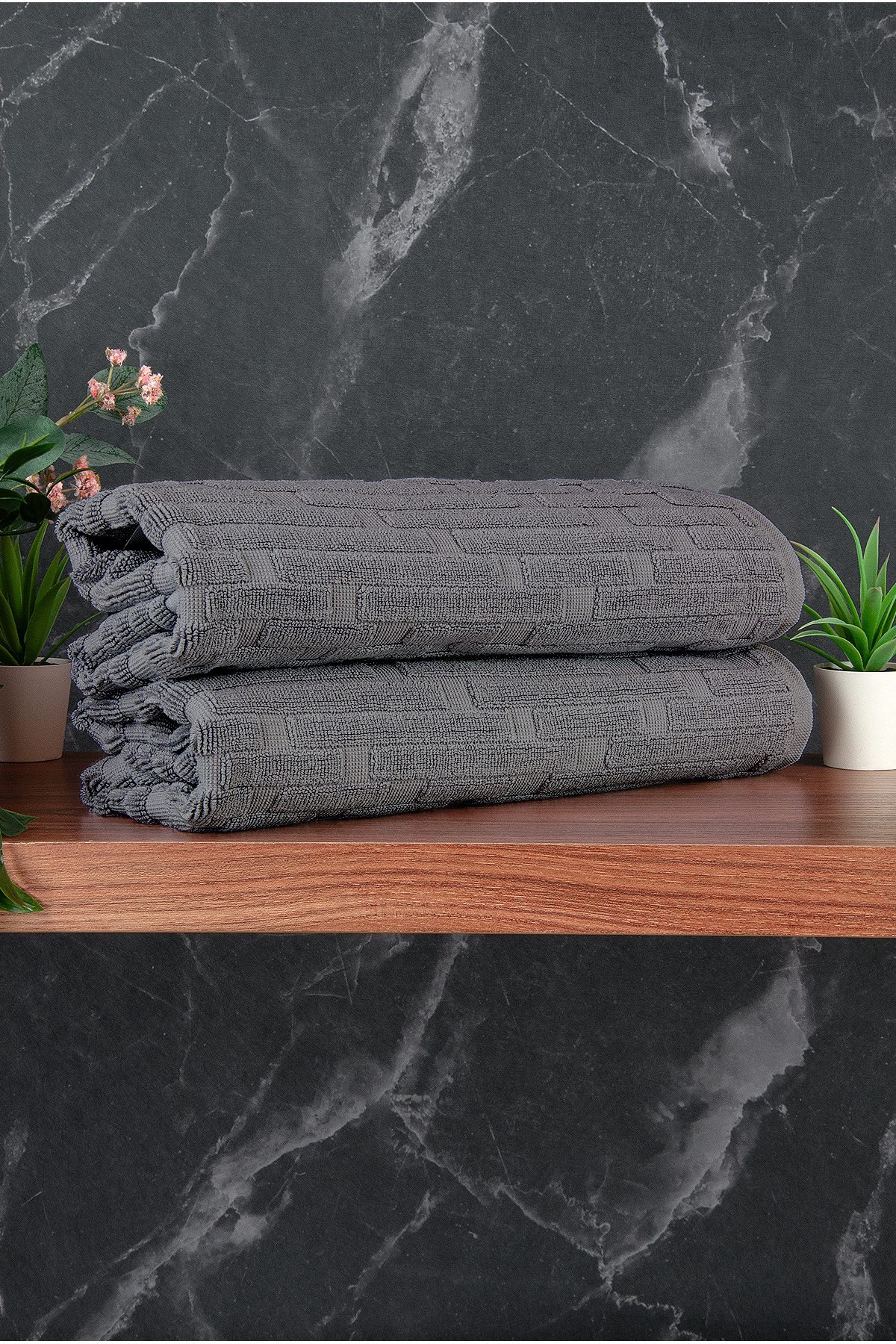 ihvan online Tuğla Desenli 2li Ayak Havlusu – 50×70 cm – Su Emici Banyo Paspası Seti – Koyu Gri